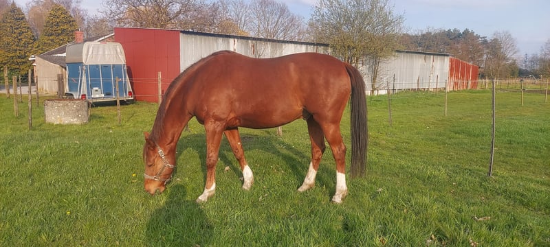 C'est avec regret que je dois vendre mon cheval en raison d’un déménagement, il ne peut pas l’accompagner. Wynston est un cheval très gentil et affectueux, qui ne fera jamais de mauvais pas. En raison du manque de temps, il n’a pas été monté cette dernière année, seulement lâché en longe de temps en temps. Il est facile avec le maréchal-ferrant, le vétérinaire, lors des déplacements. Il est sans fers, mais peut en porter si nécessaire, il en a déjà eu par le passé. À jour avec ses vaccinations, son détartrage annuel, et il a une bonne dentition. Il part avec sa selle sur mesure Custom et son bridon. Le prix est négociable pour une bonne famille. Veuillez utiliser WhatsApp, s'il vous plaît.