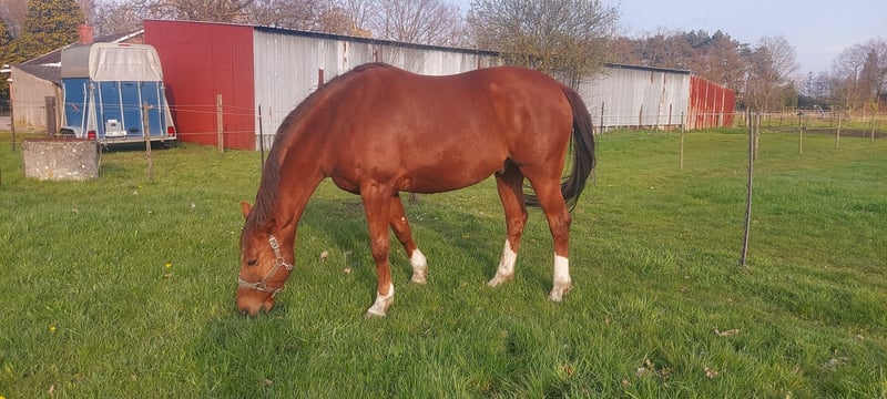 With a heavy heart, I have to sell my horse due to moving, and he cannot come along. Wynston is a very well-behaved and affectionate horse who will never do anything wrong. He is calm with the farrier, veterinarian, and during transportation. He is currently without shoes, but he can be shod if desired, as he has been in the past. He is fully up-to-date with vaccinations, deworming, and the dentist visits annually. He has a good set of teeth. The saddle can be purchased along with him. Please use WhatsApp to contact: 0478/97 14 97