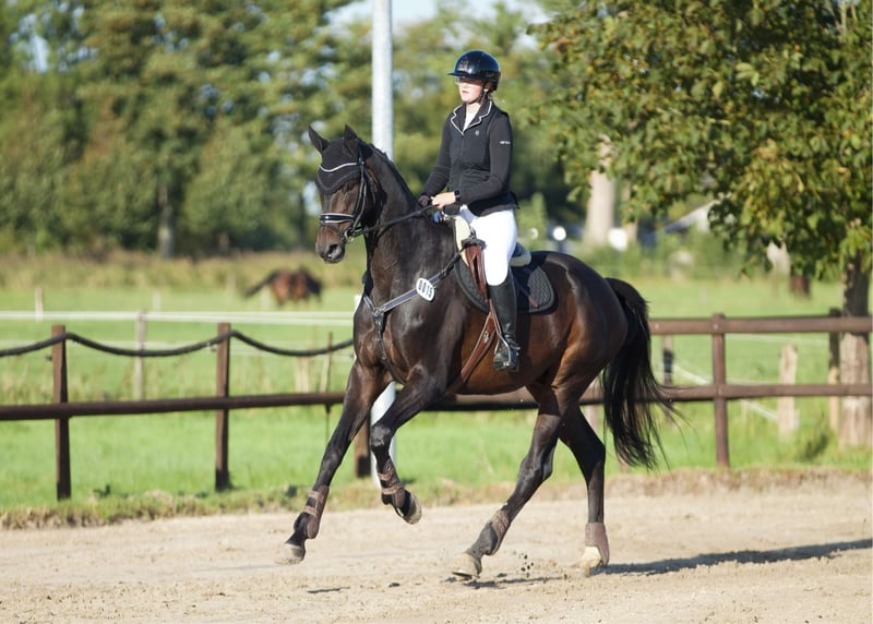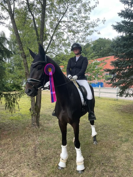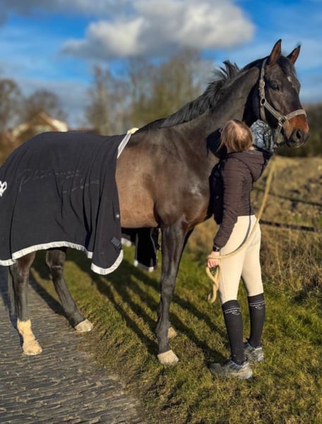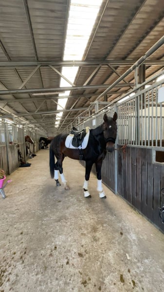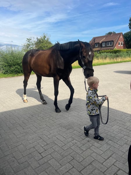Lino is a willing-moving gelding with three good basic gaits, with particular emphasis on his walk and canter. He is very easy to ride and brings joy every day. He consistently demonstrates a good work attitude and has a lot of enthusiasm for jumping. This year, he has been successful multiple times at competitions up to class A (Dressage A, Jumping E). He is curious, alert, and very attached to his trusted humans. He shows no bad habits in handling and loads effortlessly. He also behaves impeccably with the farrier. He is accustomed to hacking out in the woods and on the beach. Overall, Lino is a sweet partner for sport or leisure riding who always wants to do his best. He is used to being outside all day in the summer and is lower in rank within a gelding herd. He feels most comfortable when he is outdoors a lot. I am only selling him to the very best hands due to family changes. Priority goes to the rider, not the price! Due to some minor flaws that do not limit him, I am selling him below value!