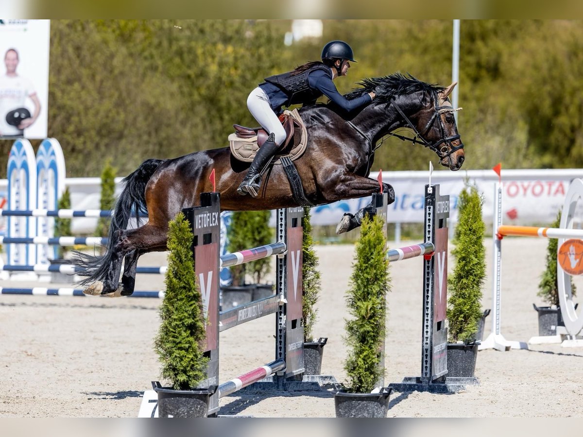 Cari is 12years old hannoverian gelding with experiances up to 1,4m. Till now he was ridden just by ladies. He acchieved with his adult rider 1,4m. Last two years he has been ridden by junior. He took junior smoothly through 1,3m and 1,35m. He tollerates some of the young unskilled behavior. He is naturaly quick, he is no “diesel boy”. Cari is very friendly, easy handling. He is healthy, in top condition. Further information and videos on request