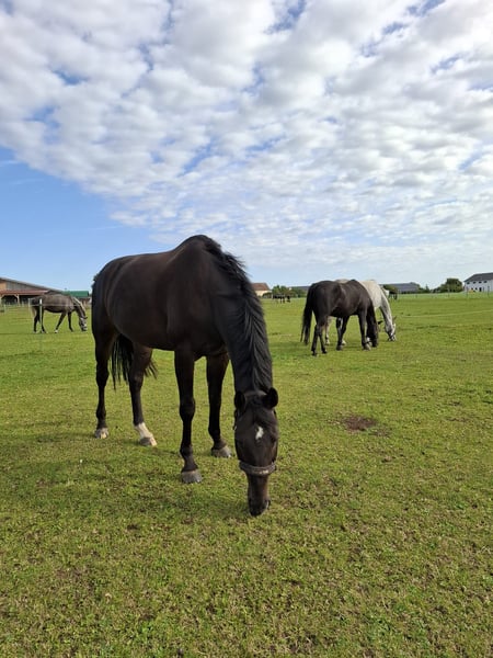 ✨ 🖤 Good Lad – Charming All-Round Companion with Quality and Heart 🖤 ✨ Known as Günter, Good Lad is a stunning, charming Hanoverian gelding (born 2012, by Graf Top × Sandro) who captivates everyone with his affectionate nature and his radiant presence. He impresses with three very good basic gaits, lightness in movement, and a pleasant riding feel. In daily training, he shows motivation, sensitivity to aids, and a constant effort to please his rider. He is highly rideable and masters dressage movements up to level M with ease. Whether on the arena or in the countryside – Good Lad is a wonderful partner for ambitious leisure riders who appreciate variety and harmony in the saddle. He is relaxed both alone and in a group when hacking out and enjoys all kinds of rides: from leisurely Sunday hacks and brisk canter stretches to refreshing water crossings – he is up for everything. From his past, he brings solid training and competition experience in show jumping with wins and placings up to level M** and in dressage up to M*. He is not sold for competitive sport, as he sometimes does not show consistent reliability and stress resistance in that setting. Occasional, small competition outings are probably no problem, but they should not be the main focus! He is intended to be a calm, loving leisure partner in a peaceful home where his qualities and character can be appreciated mainly in everyday life. Good Lad is not suitable for beginners – he requires a sensitive, experienced rider who enjoys fine riding. He gets along very well with other horses and is familiar with both small group turnout and paddock housing. He is very people-oriented, affectionate, and loves to be pampered and cared for. ✅ Shoeing (full set, no issues with hooves) ✅ Loading (trailer & truck) ✅ Regular veterinary and physiotherapeutic/chiropractic care ✅ Current TÜV (valid until early 2025) with minor age-related findings – all flexion tests negative ✅ FEI passport available Sale only to a suitable, loving, and permanent home – priority is given to a good, lasting environment. Place before price.