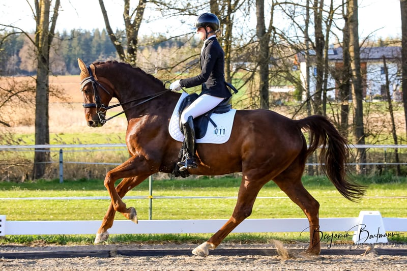 Bärchen ist weit mehr als ein Pferd – er ist bester Freund, echtes Familienmitglied und verlässlicher Sportpartner in einem. Ein Pferd, das man nicht einfach besitzt, sondern ins Herz schließt. Es gibt kaum etwas, das Bärchen nicht kann: Lektionen der hohen Dressur meistert er ebenso selbstverständlich wie das Springen oder Aufgaben aus der Vielseitigkeit. Dabei ist er stets ehrlich, immer bemüht und gibt seinem Menschen jederzeit ein sicheres Gefühl. Im Gelände ist Bärchen zu 100 % verlässlich – ein Pferd, auf das man sich blind verlassen kann. Egal ob entspanntes Ausreiten, ein Bad im Chiemsee oder der große Auftritt auf dem Turnier: Bärchen macht alles mit und schenkt dabei immer Freude. Selbst zwei Kinder ohne Sattel auf seinem Rücken bringen ihn nicht aus der Ruhe – er bleibt gelassen, brav und freundlich. Bärchen liebt die Nähe zum Menschen, möchte gefallen und geht mit einer Selbstverständlichkeit durchs Leben, die man nur selten findet. Ein echtes Spaßpferd mit Herz, Charakter und unglaublicher Vielseitigkeit. Kein Notverkauf. Bärchen wird ausschließlich in allerbeste, liebevolle Hände abgegeben – dorthin, wo er weiterhin als das gesehen wird, was er ist: ein treuer Partner fürs Leben. 🧸🤍