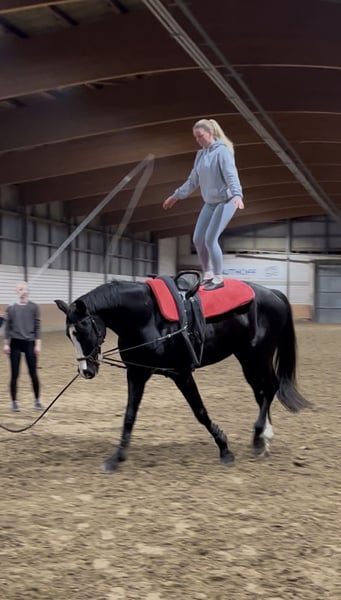 Vivaldi è un castrone di 13 anni dal carattere eccellente e con un passato molto versatile. Originariamente addestrato come cavallo da salto, oggi si presenta come un affidabile allrounder, che conquista soprattutto per la sua calma, sincerità e il suo caratter attento. Nel salto, Vivaldi è un vero maestro fino alla classe A: motivato, chiaro nelle linee e sempre leale con il cavaliere. Conosce il suo compito e infonde sicurezza. Tuttavia, non lo vediamo più come un cavallo da competizione che deve esibire prestazioni regolari o essere sotto pressione. Preferiamo offrirlo in una nuova casa in cui l’equitazione rispettosa del benessere del cavallo e il piacere di lavorare siano al primo posto. Per questo motivo, lo vendiamo consapevolmente come un allrounder e non per il salto di livello superiore (L/M). Per quanto riguarda il dressage, Vivaldi è ben avviato fino alla classe A e si presenta piacevolmente nel lavoro quotidiano. Tuttavia, la sua particolarità più evidente è la sua eccezionale predisposizione al volteggio: Senza essere stato specificamente addestrato, permette ai volteggiatori di esibirsi con lui in modo assolutamente tranquillo, restando calmo e rilassato, e dimostrando chiaramente di godere dell’attenzione. Anche con più bambini intorno, non perde la calma – al contrario, adora essere coccolato e accudito. Per questo, lo vediamo come un eccellente potenziale cavallo da volteggio. In campagna, Vivaldi è un partner assolutamente affidabile: tranquillo, resistente e senza complicazioni – sia da solo che in gruppo. Nel rapporto con le persone si comporta in modo esemplare, è facile da caricare e da maneggiare anche con il ferro, e sempre cordiale. Dal punto di vista sanitario, Vivaldi non ha mai avuto problemi seri o zoppie. Le lastre radiografiche mostrano un riscontro occasionale con delle piccole formazione ossee nella zona dello zoccolo e del corno del piede anteriore, che finora non gli hanno causato alcun problema. Per precauzione, attualmente porta sotto gli ferri delle piccole solette, motivo per cui non vogliamo più impiegarlo in discipline di salto più impegnative. Vivaldi viene affidato esclusivamente a una famiglia che garantisca il pascolo tutto l’anno – questa è una condizione imprescindibile. La vendita avviene esclusivamente per motivi privati, poiché la figlia si trasferirà presto per motivi di studio. Un partner meraviglioso per il tempo libero, l’addestramento fino alla classe A, il lavoro in campagna, il salto di piccole dimensioni senza pressione da gara o come un amorevole cavallo da volteggio con un grande cuore.