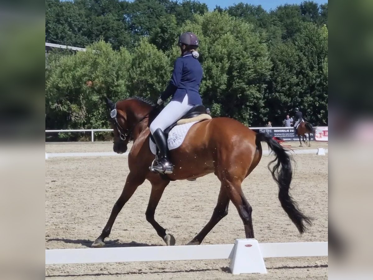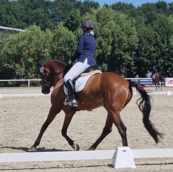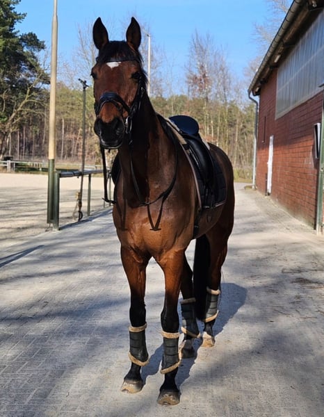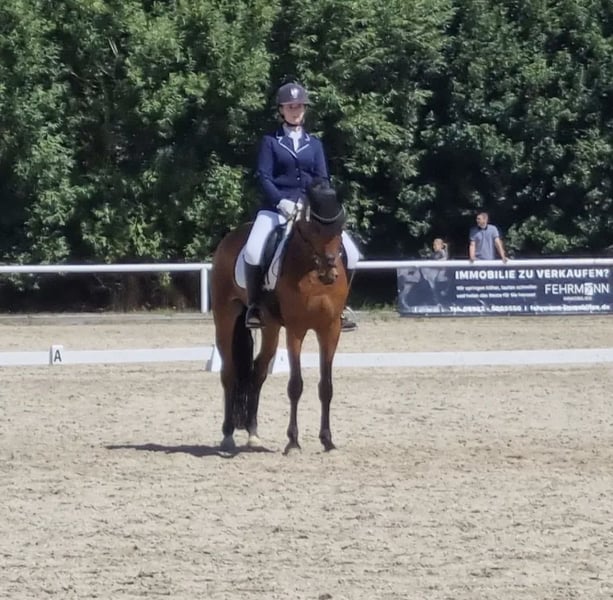 Schweren Herzens biete ich hier meinen 2011 geborenen, 1,65m großen Wallach von Conteur x Wolkenstein II zum Verkauf an, da wir nicht mehr zusammen passen. Vor 8 Jahren habe ich ihn angeritten gekauft und viel von ihm lernen dürfen, dennoch passen meine Wünsche nicht mehr mit seinen Möglichkeiten zusammen. Ihm macht der regelmäßige Turniersport und Anhänger fahren zu viel Stress, was ich ihm gerne ersparen möchte. Aufgrund dessen verkaufe ich ihn als Freizeitpferd mit Turniererfahrung. In der Dressur arbeiten wir an den L Lektionen, während er solides A Niveau im Training läuft. Im Springen geht er sicher durch einen E/A-Parcours, springt aber auch schon mit seiner Reitbeteiligung einzelne Sprünge auf A/L Niveau. Leider konnte ich ihn im Springen selbst nicht wirklich fördern, dennoch ist er unglaublich motiviert und möchte immer auf die andere Seite. Im Freispringen zeigt er seine Möglichkeiten und springt dort bisher 1,20 m. Charly kennt Offenstallhaltung und Boxenhaltung mit Weidegang. Eine ganze Zeit lang stand er an einem Ponyhof, somit sind ihm Kinder, Trecker, Hunde usw. bekannt. Er wird stets beim Hufschmied vorgestellt, osteopathisch durchgecheckt, entwurmt und seine Zähne werden regelmäßig nachgeschaut. Aufgrund seiner sensiblen Art ist er nicht für Anfänger oder unsichere Reiter geeignet. Trotzdem ist er immer super ehrlich und will immer gefallen. Auf kleine Kinder passt er immer super auf wenn sie geführt werden, aber auch im allgemeinen Umgang ist er immer sehr umsichtig. Er wird aktuell von einer 16-Jährigen mitgeritten und wird manchmal von einer Anfängerin an der Longe geritten. Beim Reiten zeigt er sich stets motiviert und arbeitswillig. Dressur- und Springlehrgänge hat er immer gerne mit gemacht und ist stehts motiviert. Spaziergänge im Gelände und Bodenarbeit sind auch kein Fremdwort für ihn. Er hat keine Unarten oder Erkrankungen und war in der Zeit bei mir noch nie großartig verletzt. Durch sein spätes Anreiten hat er sich voll entwickeln können. Charly wird nicht an Händler oder Schulbetriebe verkauft! VHB, aber es gilt Platz vor Preis! Für das Probereiten nehme ich 20€ um Reittourismus zu vermeiden. Diese werden beim Kauf wieder gutgeschrieben.