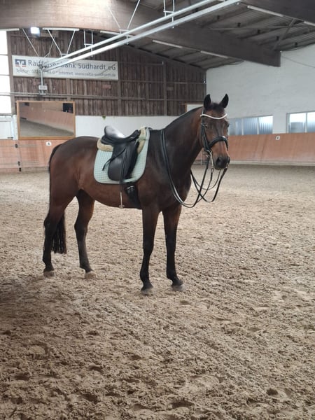 16-jähriger Hannoveraner – 163 cm gross, kein Gewichtsträger Manchmal ist es Zeit, loszulassen – und genau deshalb suche ich für meinen 16-jährigen hannoveraner -Wallach ein Zuhause, wo er einfach Pferd sein darf. Er ist ein echtes Freizeitpferd mit Herz: Gelände- und Verkehrssicher, kennt Hunde, Traktoren und andere Alltagssituationen. Im Springen wurde er bis Kl. A vorgestellt, aber Turniere stressen ihn – er blüht erst richtig auf, wenn man entspannt mit ihm ins Gelände geht oder gemütlich arbeitet. Er hat auch bereits an mehreren Lehrgängen in Dressur und Springen teilgenommen. Auch auf Fuchsjagden kann ich ihn mir sehr gut vorstellen, erste Erfahrung im Bereich in Working Equitation hat er auch mit Bravour gemeistert. Er ist herdenverträglich, sensibel und fein zu reiten – daher nicht für Anfänger, sondern für jemanden mit Erfahrung, Ruhe und Herz, der ihn versteht und ihm Vertrauen schenkt. Ich wünsche mir für ihn einen Platz, wo er als Familienmitglied geschätzt wird und nicht als Sportgerät. Er möchte dazugehören, geliebt werden und regelmäßig bewegt und beschäftigt werden. Hast du ihn auf deiner Seite, geht er für Dich durchs Feuer Platz vor preis