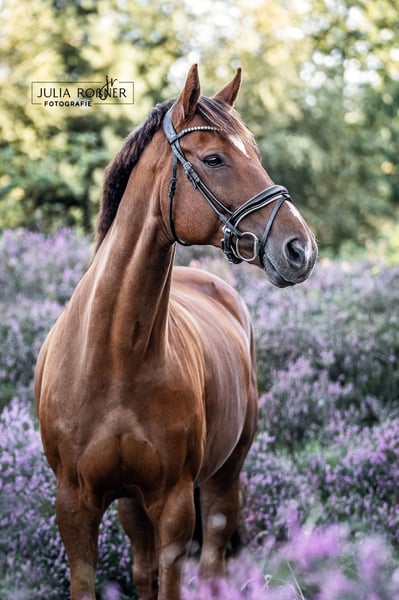 Actually, we don't want to part with him, but if there is someone who can offer Harley exactly what he loves most—many beautiful rides—we would consider giving him a new 5-star home. He is a wonderful all-rounder who, at 18 years old, is far from ready to retire! Due to a medical condition that does not affect his daily life, we placed him in retirement from competition two years ago, and he now enjoys his life as a leisure horse. He has been ridden occasionally by children and is suitable for less experienced riders. In summer, he loves being on pasture 24/7, and in winter, he spends many hours outside with us in company during the day and stays in his paddock box at night. He is not a weight carrier. For us, the place comes before the price. Please contact us via private message for more details. Phone: +49 1575 1617924