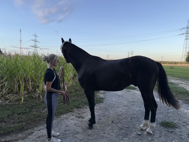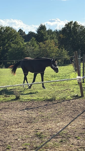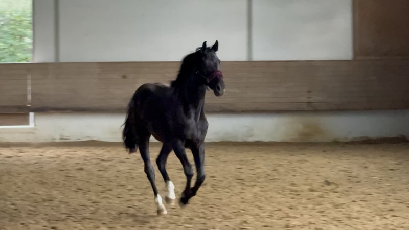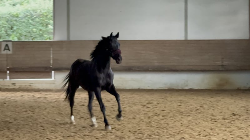 Schweren Herzens verkaufe ich meinen 2,5 jährigen Wallach Don, da ich ihm beruflich bedingt nicht mehr gerecht werden kann. Zum Verkauf steht ein vielversprechender Hannoveraner Wallach, geboren im Jahr 2023. Der elegante Rappe beeindruckt durch sein freundliches Wesen und seine Erscheinung. Mit einem Stockmaß von aktuell 166 cm bietet er die perfekte Größe für ambitionierte Reiterinnen und Reiter, die einen zuverlässigen Partner suchen. Für sein Alter ist er bereits sehr schlaue und lernwillig. Er liebt es mit seinen Menschen zu arbeiten und zeigt dabei auch viel Freude. Er hat einen ruhigen und angenehmen Charakter der es ermöglicht ihm schnell Dinge beizubringen und ihn als perfekten Begleiter für Freizeit oder auch spätere Turniere auszeichnet. Er genießt die Aufmerksamkeit die er bekommt und jede Kuscheleinheit, dabei schließt er einen auch direkt ins Herz. Er geht ohne Probleme allein ins Gelände und zeigt sich hier auch nie schreckhaft. Andere Tiere wie zb Hunde kennt er und läuft entspannt neben ihnen her. Die ersten Bodenarbeit Übungen sind ihm bekannt wie an der Hand in Schritt und im Trab zu gehen, dabei hört er gut auf die Kommandos zum angehen bzw anhalten. Rückwärtsrichten ist für ihn bereits auch kein Problem. Aktuell übt er auch bereits das rausschickende als Vorbereitung für das longieren. Der Pferd ist regelmäßig entwurmt, geimpft und gesund. Ich wünsche mir für ihn das er in einen Stall kommt wo er mit anderen auf die Koppel kommt und aber auch von seinen neuen Besitzern geistig gefördert wird, da er das in seinen Alltag braucht. Bei Interesse oder für weitere Informationen stehe ich gerne zur Verfügung. Eine Besichtigung ist nach Vereinbarung möglich. AKU kann auf Wunsch gern gemacht werden. Platz vor Preis!