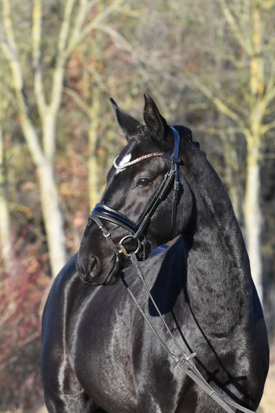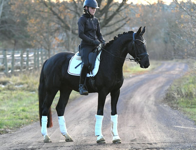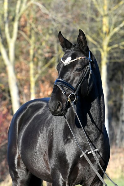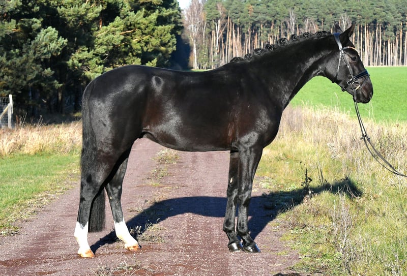 Wer mag es schwarz und rittig ? Hier kommt unser " Rawenclaw" , ein Sohn des Grand Prix siegreichen Vererbers Rassolini aus einer Surprise- Desperados Mutter - hier kommt alt bewährtes Dressurblut zum Einsatz ! " Rudi " ist seit dem Spätsommer bei uns in Grundausbildung, er wurde schonend angeritten und kann nun in Halle und Gelände geritten werden. Er zeigt sich stets motiviert mit Go ausgestattet, ist dabei immer händelbar . Tolle, solide Grundgangarten runden seine positiven Eigenschaften ab- ein perfektes Ausbildungspferd! Ein sehr guter TÜV aus 2024 ist vorhanden, kann aber auf Wunsch noch mal aktuell gemacht werden. Im Umgang ein Schatz, unkompliziert mit anderen Pferden, kann auch mit Stuten zusammen stehen. Rudi kommt direkt vom Züchter und freut sich auf ein tolles neues Zuhause, wo er die Nr. 1 sein kann ! Tolles handliches Format , ideales Umsteigerpferd/ XXL Pony /Juniorenpferd!