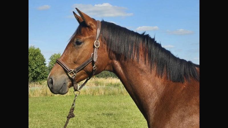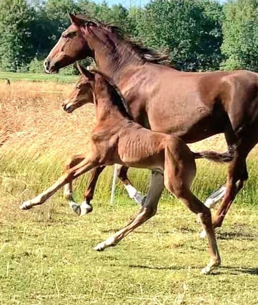 Dreijähriger brauner Hannoveraner Wallach von Fusionist / Quaterhall / Davignon I aktuell noch roh. Das derzeitige Stockmaß beträgt 165cm. Mit einem halben Jahr ist er in einen renommierten Aufzuchtstall umgesiedelt worden, in dem er regelmäßig geimpft, entwurmt und dem Schmied vorgestellt worden ist. „Ferdinand“ kennt alle normalen Tagesabläufe wie rein und raus bringen, auf der Weide aufhalftern sowie den Schmied und ist dem Menschen gerne zugewandt. Er ist leicht am Halfter anlongiert und lässt sich gut alleine von der Herde wegführen ohne zu kleben. Der Wallach steht eher in leichten Typ, hervorzuheben sind seine drei guten Grundgangarten insbesondere der sehr gute Schritt und Galopp. Im Moment steht er mit zwei Stuten und zwei Wallachen zusammen und zeigt sich sehr sozial und ruhig. Im Sommer 24 Stunden Weide, im Winter nachts in der Box. Barhufer zur Zeit 24/7 auf der Weide. Eine liebevolle, gerne fördernde Endstelle wäre wünschenswert für ihn, ein Verkaufsstall ist keine Option.