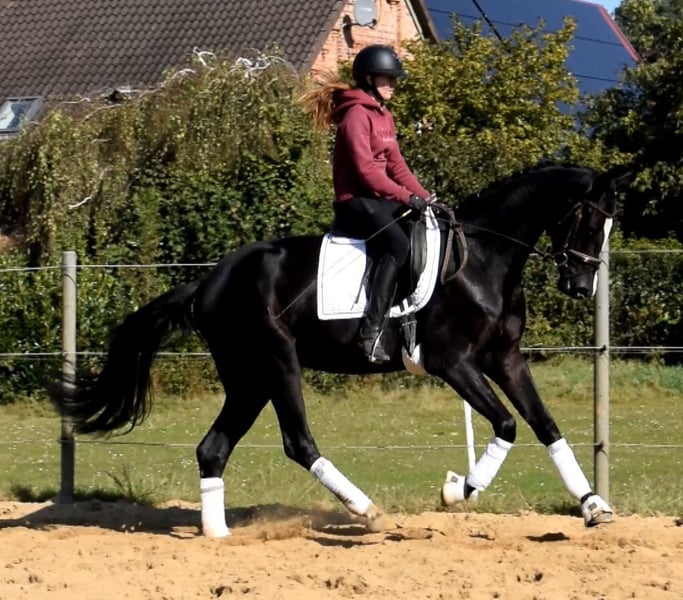 A fantastic schooling horse with great quality for the dressage arena and an unbeatable character! Livaldo is now well-started under saddle and on his way to Prix St. Georges level. He handles his tasks excellently and shows a commendable development through daily training. He has already completed his first outdoor rides. Livaldo is very well-behaved, easy to ride, and eager to learn, making him an excellent choice for amateurs and young riders alike. He is also a genuine sweetheart in handling and is always up for a fun time. Livaldo comes directly from the breeder and was raised in a herd environment. Current very good X-ray images are available. Upon request, we are happy to send you additional training videos.