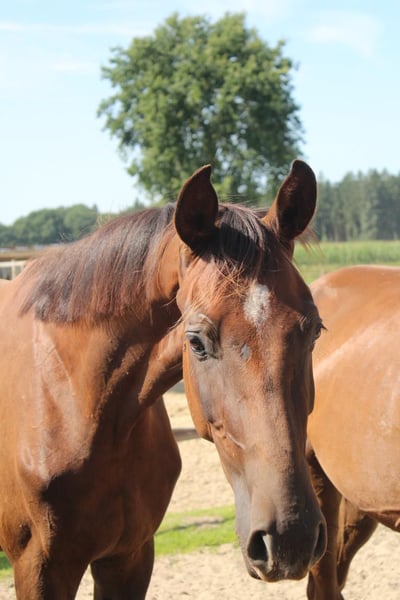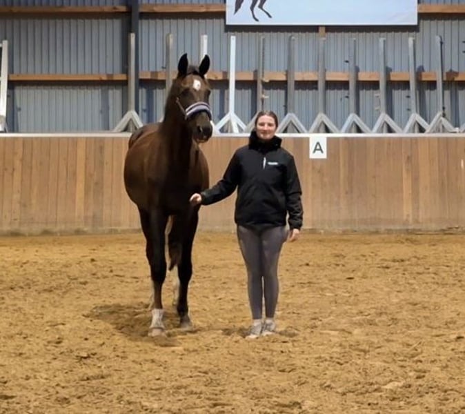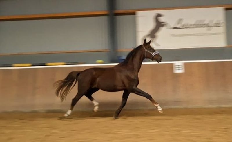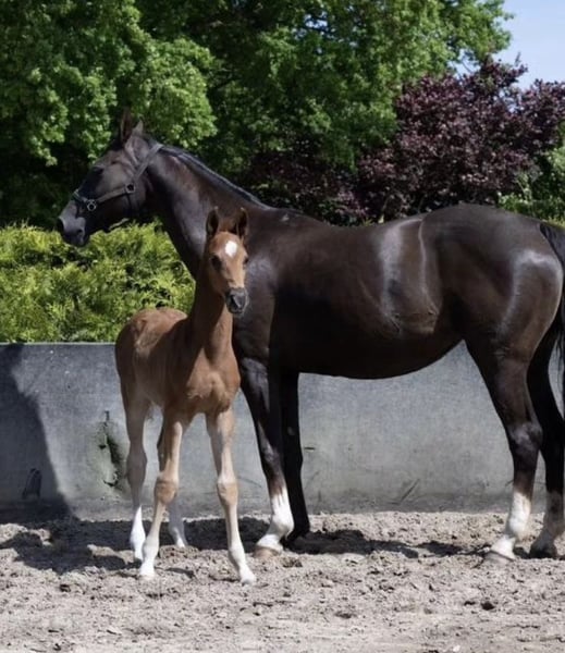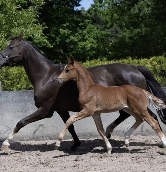 Te koop staat een uitzonderlijke jonge ruin geboren op 18 april 2023 Afstamming: Bonds x Dagostini x Rotspon Al als veulen wist hij zich duidelijk te onderscheiden van de concurrentie: • Winnaar veulenkampioenschap in zijn categorie op de veulenschouw • Overall tweede plaats op het hele evenement met waarderingen tussen 8 en 9 voor type, beweging en indruk Een echte blikvanger met substantie en uitstraling – nu al een sportpaard met présence. Deze verfijnde ruin combineert topgenetica met een uitstekend karakter en groot sportpotentieel. Hij is afkomstig van de gerenommeerde hengst Bonds, een donkerbruine uitblinker met een stokmaat van 1,70 m, die overtuigt door zijn ruime, elastische basisgangen en hoge rijbaarheid. Bonds behaalde zijn sporttest in 2017 in Münster met een totaalscore van 9,12, inclusief een perfecte 10,0 voor de galop – een uitzonderlijk resultaat dat zijn buitengewone talent onderstreept. De moeder, onze premievolle merrie Donna (Dagostini x Rotspon x World Cup), valt op door haar edele verschijning en haar prachtige gangkwaliteiten. Donna belichaamt een harmonieuze mix van elegantie, bereidheid tot presteren en een evenwichtig temperament, eigenschappen die ze ook doorgeeft aan haar nakomelingen. Karakter: De jonge ruin is vanaf de geboorte opgegroeid in een stabiele veulengroep en staat momenteel samen met zeven leeftijdsgenoten – de beste basis voor een goede socialisatie. Hij beschikt over een evenwichtig, nieuwsgierig karakter en is altijd ontspannen en vriendelijk in omgang. Hij kent de basis van het veulenschooltje en is al halster- en trailer-gewend. Stallen, paddock en wei zijn hem vertrouwd. Het regelmatige bezoek aan de hoefsmid verloopt probleemloos en stressvrij. Deze combinatie van veelbelovende afstamming, gezond sociaal gedrag en goede basisopleiding maakt hem tot een ideaal partner voor ambitieuze dressuursporters. Wij zien in hem: Een absoluut uitzonderlijk veulen met uitstekende voorwaarden voor de dressuur of veelzijdig gebruik. Dit paard belooft een succesvolle toekomst. Prijs: wij maken graag eerlijke aanbiedingen! Bij interesse of vragen hoor ik graag van u!