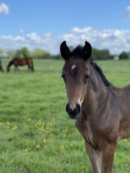 Zum Verkauf steht „Harry“, ein Hannoveraner Wallach (*2022) von For Romance I x Dimaggio, der nicht nur durch seine besonders freundliche und interessierte Art besticht, sondern auch durch seine drei sehr guten GGA auffällt. Harry ist bei mir geboren, seine Mutter ist die Hannoveraner Prämienstute „Dark Girl“, die einen ebenso guten Charakter und Bewegungspotential mitbringt. Als Fohlen wurde er vom Hannoveraner Verband mit der Verbandsprämie ausgezeichnet. Er ist absolut unkompliziert und unerschrocken im Umgang. Anbinden, putzen, satteln & trensen, longieren und Hufschmiedbesuche sind kein Problem für ihn. Zudem bewahrt er auch immer die Ruhe, wenn er zB mal allein auf der Stallgasse ist. Aufgrund meiner Schwangerschaft konnte ich den nächsten Schritt seiner Ausbildung noch nicht gehen. Dementsprechend ist er bisher nicht angeritten. Mit seiner ausgeglichenen Art und der bisherigen Vorarbeit wäre das aber sofort möglich. Harry ist sehr verträglich mit anderen Pferden, stand bei uns im Sommer immer 24/7 in einer Herde auf der Weide und geht momentan täglich in einer Gruppe auf den Paddock. Ich gebe ihn nur in Hände mit langfristiger und pferdegerechter Perspektive ab. Harry war bei mir nie krank oder lahm, wird aber leider aufgrund eines röntgenologischen Befundes unter Wert verkauft. Bei Interesse kann ich die Röntgenbilder gerne zusenden. Tel. 01726113342