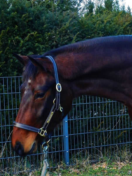 Questo affascinante giovane castrone è alla ricerca della casa perfetta. Non solo possiede tre ottimi giri di base, ma anche un carattere straordinario. Appena messo in sella, mostra un'attitudine al lavoro eccellente ed è molto equilibrato. Molto affettuoso con l'uomo, è cresciuto in una piccola mandria tra bambini, cani e trattori. Ottime foto TÜV, incluso il controllo della schiena dell'anno scorso. Vaccinato contro l'influenza, l'herpes e il tetano. Fermo alla forgiatura e abituato al carico. Denti controllati a gennaio. Un cavallo con cui si può partire subito.