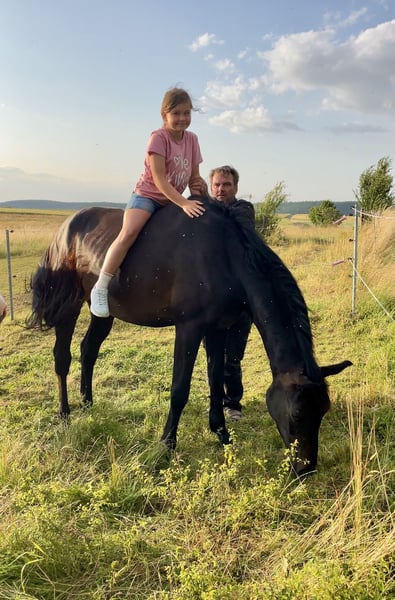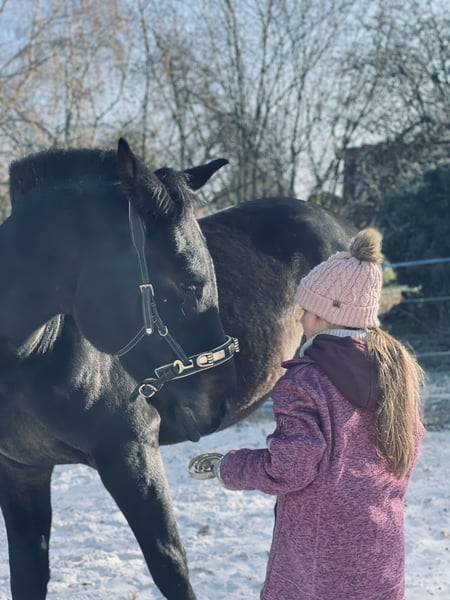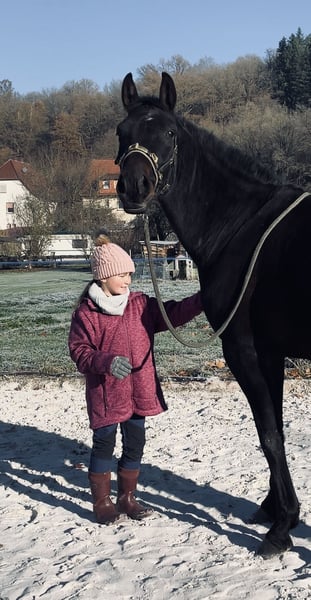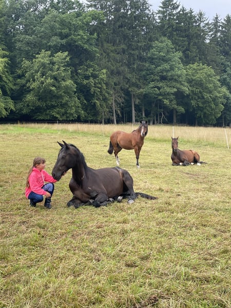 Finden wir SEIN passendes Zuhause, darf unser schwarzbrauner Hannoveraner Wallach ausziehen. Er heißt Cadeau de Contendro und ist am 06.06.22 geboren. Preiskategorie C. - Preis verhandelbar Cadeau ist ein Ebenbild seines Vaters, er trägt väterlicherseits Reichsgraf und Cor de la Bryere im Stammbaum und verfügt auch mütterlichseits über die besten Anlagen für den großen (Vielseitigkeit-) Sport, hier findet man die Namen Laurentio, Lauries Crusador und Weltmeyer wieder. Wir haben Cadeau von der Hengstweide gekauft. Unsere Tochter hat ihn sich ausgesucht. Er sollte ihr Zukunftspferd werden. Wir haben ihn dieses Jahr legen lassen, die Heilung verlief wie aus dem Bilderbuch. Seine ganze Entwicklung lief wie aus dem Bilderbuch - Cadeau und unsere Tochter hatten sofort eine Bindung. Sie hat ihm schon so unendlich viel beigebracht (und er ihr) und so schenkten sich beide sehr schnell Vertrauen und sie durfte früh auf ihm sitzen. Er ist einfach ganz besonders. Auf der Weide, oder auf dem Reitplatz (auch alleine) hat sie ihn schonend an Satteldecke und Sattel gewöhnt und das Longieren begonnen, natürlich immer mit erwachsener Unterstützung. Dieses Pferd macht einfach alles brav mit. Er lässt sich verladen und ist brav beim Tierarzt und Hufpfleger. Natürlich hat er auch mal jundpferdetypisch Flausen im Kopf, testet mal beim Hufegeben, (zieht das Bein hoch - niemals treten) aber gibt auch sofort wieder auf. Dieses Pferd wird nur aus gesundheitlichen Gründen meinerseits verkauft und auch nur an Bestplatz! Wir haben keinen Verkaufszwang. Cadeau zeigt sich mutig, aufgeschlossen und sehr lernwillig und lernfreudig. Neue Situationen meistert er mit einer großen Souveränität und Überblick und ist für sein junges Alter weit voraus. Im täglichen Umgang ist er ein absoluter Schatz, immer der Erste am Zaun und weicht einem nicht von der Seite - außer wenn man es von ihm verlangt. Cadeau ist ca. 1,63 groß, momentan ist er etwas überbaut. Frisch geimpft, Hufe regelmäßig bearbeitet.