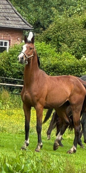 Four-year-old Hanoverian gelding (by Bonds) for sale We are offering our 4-year-old Hanoverian gelding, "Boons," born in 2022. His sire, "Bonds," is a proven successful sire and a winning stallion who passed the Oldenburg licensing in Vechta in 2015. "Boons" is halter-trained, farrier-friendly, and has not yet been backed. He has a friendly, balanced temperament, is trustworthy, unafraid, and very social. He features a handsome exterior with an expressive head and a compact build. "Boons" is well-movemented, currently measuring approximately 16.1 hh, with an excellent trot and canter. Due to a PSSM2 diagnosis, we were unable to prepare him for licensing as planned. In walk, his hindquarters can appear slightly stiff, and there may be some irregularities in rhythm at times (it is unclear whether this would also be noticeable under saddle). He has grown up with us on our farm, is completely honest, and makes a great partner for an experienced leisure rider without ambitions for competition. We are reluctantly offering him for sale due to time and space constraints, at a protective price of €3,500, to a caring, experienced, and loving home. "Boons" has been living since last summer in a small herd in an open stable environment in Norderstedt. If you are interested in our "Boons," please contact me at Phone: 0157 77854023 (Nina Magnussen)