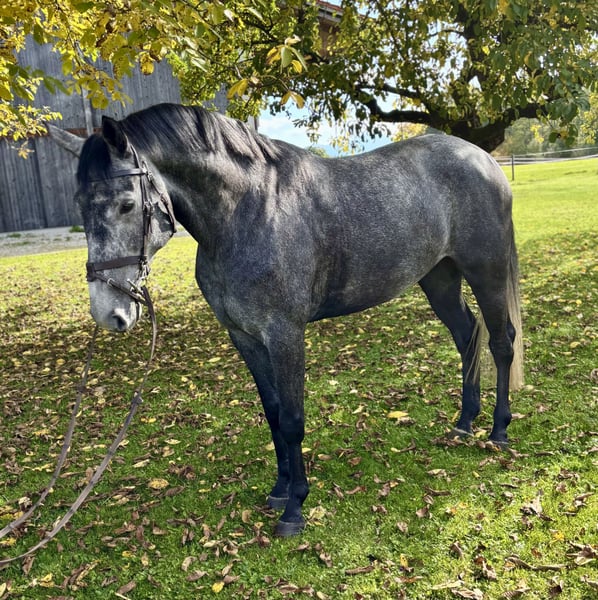 4-jähriger Wallach v. Dia Pleasure Dia ist nicht nur bildhübsch, er hat auch einen 1A Charakter, einen korrekten Körperbau und ebenso korrektes Fundament. Er ist sehr leichtrittig und fein in der Hand. Ob beim Reiten oder im Umgang - Dia möchte immer gefallen und ist in allem äußerst unkompliziert. Ein tolles Pferd für die Zukunft! Wir können ihn uns - bei entsprechender Ausbildung - als super Mädchen- /Damenreitpferd vorstellen! Er geht barfuß und ist ca 1,65 groß Standort: 82390 Gute Röntgenbilder vorhanden Bei Interesse: 00491608993683