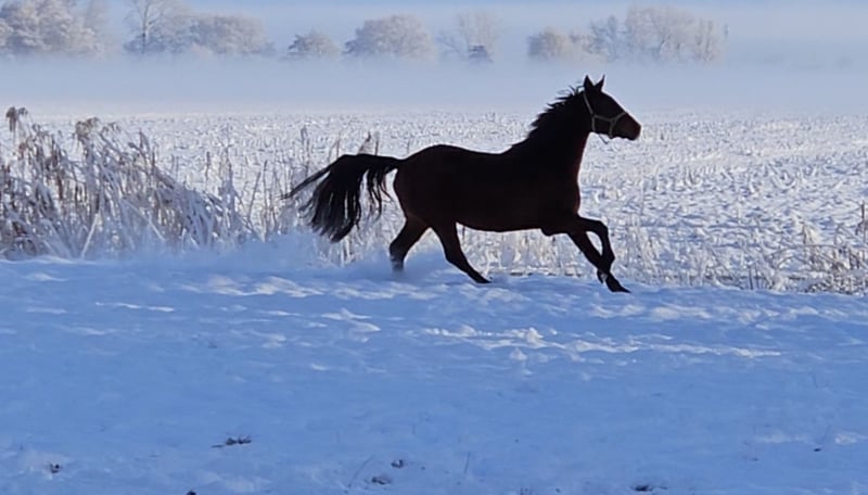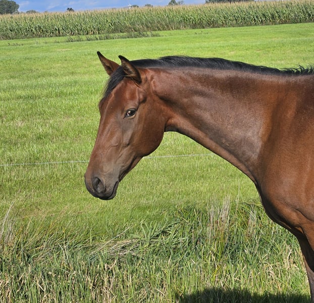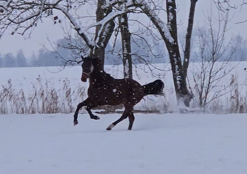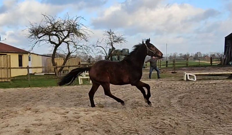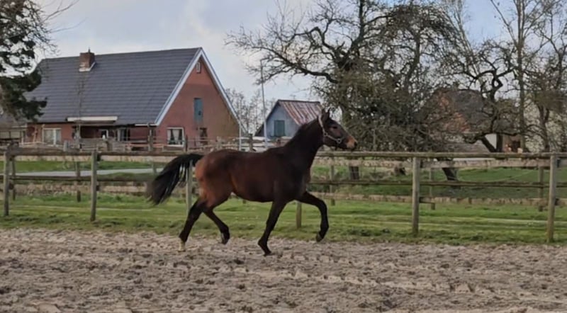 Strong-moving gelding from our own breeding, who is easily lunged. He also makes a good jump when free jumping. A vet check from late summer 2024 is available with no findings.