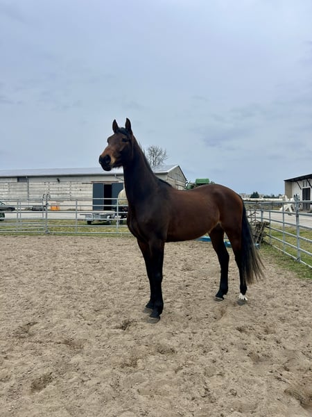 Moderner, athletischer Nachwuchswallach mit viel Perspektive für den Vielseitigkeitssport. Abstammend von Araldik aus der Sydney, einer Tochter des Szenario, vereint er leistungsgeprägte Genetik mit besten sportlichen Voraussetzungen. Die Mutter überzeugte bereits in der Stutenleistungsprüfung mit einer 8,75 in der Rittigkeit sowie einer herausragenden 9,5 im Springen – Qualitäten, die sich auch in diesem Pferd widerspiegeln. Ausgestattet mit einem großzügig angelegten, bergauf gesprungenen Galopp bringt er ideale Voraussetzungen mit. Am Sprung zeigt er sich mutig, aufmerksam und stets fokussiert auf die Aufgabe – sowohl frei als auch unter dem Reiter überzeugt er durch eine natürliche Übersicht und Springqualität. Er arbeitet motiviert, denkt mit und zeigt sich lernbereit. In seinem Bewegungsablauf zeigt er sich mit ansprechendem Bewegungspotenzial und einer natürlichen Balance. Ein ehrliches, leistungsbereites Nachwuchspferd mit viel Entwicklungsspielraum für den ambitionierten Reiter, der ein Pferd mit Potenzial für den gehobenen Sport sucht.