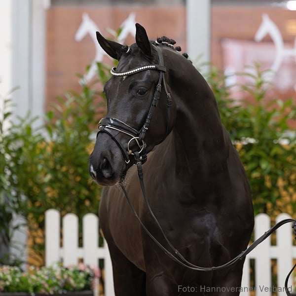 Als einer der Sterne der Kollektion präsentieren wir Ihnen Santorini. Bewegungsgüte, Leistungsbereitschaft und hervorragende Grundgangarten kommen hier zusammen. Seine Halbbrüder sind die gekörten Hengste Vitalio VIP und Valdisere v. Vivaldi und seine Großmutter stellt sechs im Dressursport erfolgreich S-Nachkommen, u. a. Dancing Star v. Dancing World (DRE: S siegreich mit Ann-Christin Wienkamp). Das Pferd wird abweichend von den Auktionsbedingungen mit einem eingeschränkten Versicherungsschutz verkauft. Bitte erkundigen Sie sich bei der Auktionstierärztin. 1. Generation gekörte Hengste: gek. Hengst Vitalio VIP v. Vivaldi (Adelheidsdorf 2023); gek. Hengst Valdisere/v. Vitalis v. Vitalis (Verden 2019,HM 2019). 2. Generation Sportpferde Dressur: Dancing Star 11 v. Dancing World (DRE: int. S** mit Ann-Christin Wienkamp); gek. Hengst Don Monet v. Don Nobless (DRE: M* mit Sophie Ludewig,Bundeschampionat f. Reitpferde 2015,Finalteilnehmer Bundeschampionat 4j.Reitpferde 2015,Championat f. Reitpferde 2015,Verden 2015). Aufbauprüfungen Dressur: Vicky in Love v. Valdiviani (DRE: L). Bes. Prämientöchter: HannPrA In My Dream v. In My Mind; HannPrA Dancing Beauty K./Dancing Beauty K v. Dancing World. 3. Generation Aufbauprüfungen Dressur: HannPrA Frieda RJO v. Floris Prince (DRE: L); HannPr Dornröschen/Dornröschen 170 v. Dancier (DRE: L). Auktionspferde: StPrA Dornröschen/Dornröschen 149 v. Dancier (VA 2012,Herwart von der Decken-Schau Verden 2011). Bes. Prämientöchter: HannPrA Queen/Queen 160 v. Quaterhall; StPr Romy v. Rascalino (Herwart von der Decken-Schau Verden 2010). 4. Generation Sportpferde Dressur: Waldzauber 11 v. Waikiki (DRE: Grand Prix mit Larissa Eßmann,Dressurprüfung Kl.S*** mit Piaffe und Passage 2019). Aufbauprüfungen Dressur: Falco Filou v. Floris Prince (DRE: L). Auktionspferde: Waldfee II LH/Waldfee II v. Waikiki (FoVA 2004). Bes. Prämientöchter: StPr Waldfee/Waldfee 647 v. Waikiki (Louis Wiegels-Schau Uelzen 2003). 5. Generation Sportpferde Springen: Esprit 126 v. Eiger I (SPR: M mit Kempf,Hans-Peter). Aufbauprüfungen Dressur: Experte 20 v. Eiger I (DRE: M mit Poetter,Bertin). Auktionspferde: Wunderfull v. Walt Disney II (VA 1998); Eigenlob/Eigenlob v. Eiger I (FoVA 1984). Mutter: Die Schöne Prämierung: 1xIa. ZL: 11/9 Großmutter: Romantica ZL: 14/13 Das Pferd ist ein Verdener Auktionspferd und wird am 25.01.2026 online versteigert. Vom 12.01. bis zum 25.01. kann das Pferd jeden Tag beim öffentlichen Training besichtigt und ausprobiert werden. Das Startgebot bei der Versteigerung ist 8.000 Euro.