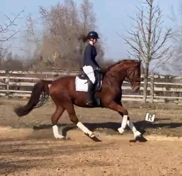Dieser grundehrliche menschenbezogene Wallach ist absolut brav im Umgang und beim Reiten. Valerian bewegt sich gut in allen drei Grundgangarten unter dem Reiter und kennt einfache Hufschlagfiguren. Dabei zeigt er sich immer willig und gehorsam, verzeiht Reiterfehler und Unsicherheiten und bleibt stets gelassen. Er ist altersgerecht vorwärts-abwärts geritten und geht leicht durchs Genick zu reiten. Durch sein solides Fundament ist er besonders im Galopp sehr bequem. Ausreiten ist seine große Leidenschaft! Er geht gerne alleine oder zu zweit ins Gelände, sowohl entspannt im Schritt am langen Zügel als auch in einem frischen Galopp übers Feld. Aber er ist immer leicht zu händeln. Valeri lässt sich gerne ausgiebig putzen und kraulen, kennt waschen, einflechten und einbandagieren. Selbstverständlich geht er problemlos zum Schmied und brauchte dank seiner guten Hornqualität bisher keine Eisen. Seine Mutter lief selbst erfolgreich im Dressursport bis M*. Wir können ihn uns gut als Partner für einen Turniereinsteiger oder als Familienpferd vorstellen, da er auch für schwächere Reiter gut geeignet ist. Ein Tüv ohne Risikobefunde liegt vor. Valerian ist wie alle unsere Pferde auf großen Flächen aufgewachsen. Sie haben vom ersten Tag an viel frische Luft und Bewegung. Sie leben im Herdenverband mit Spielgefährten. Das Einreiten erfolgt durch uns mit Ruhe, Erfahrung und Konsequenz und nur bei ausreichender körperlicher und psychischer Reife. Direkt vom Züchter. Anfragen vorzugsweise direkt per Telefon/WhatsApp.