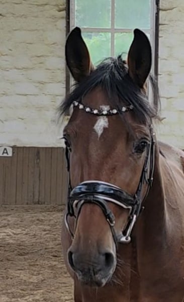 Cedrik ist ein sehr hübscher und nervenstarker Wallach mit toller vielseitiger Veranlagung. Er ist sehr rittig, mit guten Bewegungen ausgestattet und abstammungsgemäß natürlich viel Potential am Sprung. Beim Freispringen kann er mit viel Mut und Vermögen überzeugen. Er springt in schöner Manier, vorsichtig und mit viel Übersicht. Auch unter dem Reiter kann er dies umsetzen. Er springt bereits einen Parcours unter dem Reiter und wir hatten ihn gerade zu einem ersten Trainingsturnier mit. Hier lief er gleich eine fehlerfreie Runde und war fast genauso cool wie Zuhause. Dabei ist er angenehm ehrgeizig und hat Spaß an der Sache. Verladen, der ganze Umgang etc waren auch top. Ein Pferd, das in der täglichen Arbeit einfach Freude bereitet und vielseitig einsetzbar ist. Er wird hier auch problemlos ins Gelände geritten. Sein Charakter und sein Format machen den charmanten Cedrik zu einem tollen Mädchen - / Damenreitpferd mit Potential für höhere Klassen. Sein Bruder ist zB schon 1.40 m platziert. Aber auch als Partner für anspruchsvollen Freizeitreiter, in der Dressur oder sogar in der VS kann man ihn sich vorstellen. Er verträgt sich bestens auch mit anderen Pferden und ist täglich mit diesen auf dem Paddock. Einfach ein Pferd , wie man es sich nur wünschen kann. 4j Hann Wallach, 1.68m Cabo Verde (Christian ) x Calato x Corrado Gute Röntgenbilder und Klinische Aku liegen vor Video: https://youtu.be/OdXWvmmOg88?si=Bggi4g3Jm1sclyR9 https://youtu.be/48i5RBrefq4?si=vIT62hQOLHQOmXWK „Videos, Trainingsausschnitte und weitere Eindrücke zu unseren Verkaufspferden finden Sie auch auf Instagram: [maresi_lange]. Dort erhalten Sie zusätzliche Informationen und Einblicke in die Entwicklung der Pferde. Videos, training highlights and further impressions of our sales horses can also be found on Instagram: [maresi_lange]. There you will get additional insights and a closer look at the horses’ development.“ Weitere Pferde auf meiner Homepage MaresiLange.de oder auf Anfrage. Die Beschreibung des Pferdes beruht auf subjektiven Eindrücken und Erfahrungen unsererseits und ist keine Beschaffenheitsvereinbarung und Zusicherung von Eigenschaften. Probereiten erfolgt auf eigene Gefahr. Für das Vorstellen/ Probereiten des Pferdes erlauben wir uns eine Aufwandsentschädigung in Höhe von 30 Euro zu berechnen. Diese wird natürlich bei Kauf des Pferdes verrechnet.
