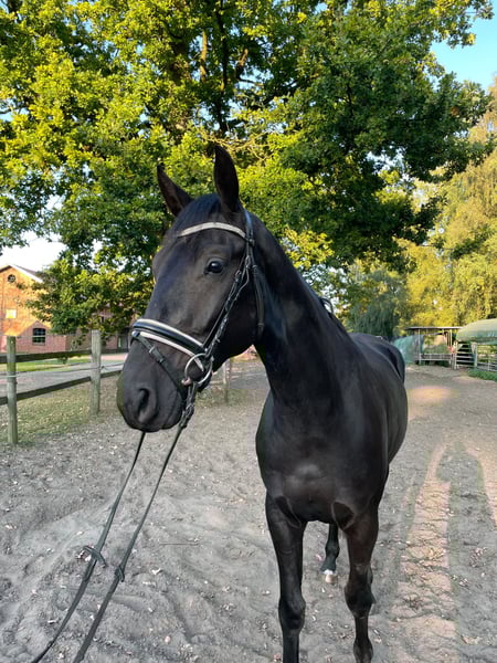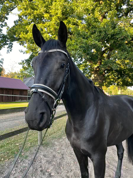 Nuestro "Glow Up" lleva desde finales de agosto bajo la silla y siempre quiere agradar. Es bien educado tanto en el manejo como bajo la silla y tiene ganas de aprender algo nuevo cada día. Tiene un carácter alegre y divertido, siempre dispuesto a hacer bromas. Conoce el círculo de trabajo y el terreno (incluso solo), y ya ha superado un pequeño salto con jinete. Lamentablemente, tiene un informe de radiografía (ver archivo) que es clínicamente normal. Actualmente vive en un paddock de establo abierto, pero también está acostumbrado a la caja con acceso diario a pasto.
