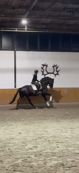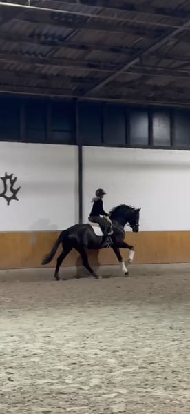 Dieser jetzt 4 jährige Wallach überzeugt nicht nur durch seine absolute Nervenstärke, sondern ebenso durch seine 3 überdurchschnittlichen Grundgangarten. Er bewegt sich immer sicher im Takt und ist für sein junges Alter und seinen Ausbildungsstand schon sehr sicher in der Anlehnung. Er begeistert einfach jeden Tag aufs Neue mit seiner positiven Einstellung zur Arbeit. Er ist noch im Besitz der Züchterin und wurde bei uns über die letzten Monate schonend angeritten und auf sein Leben als Reitpferd vorbereitet. Im Umgang ist er sehr artig. Lässt sich ohne Probleme verladen und kennt es bereits in fremder Umgebung geritten zu werden. Wurde bislang nicht auf dem Turnier vorgestellt. Weitere Infos /Videos gerne nach persönlicher Kontaktaufnahme 0151 61523331