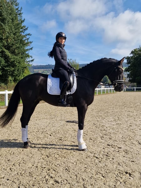 Verkaufe eleganten Hannoveraner Wallach mit super Abstammung. Zum Verkauf steht ein wunderschöner schwarzbrauner Hannoveraner Wallach, geboren im Jahr 2022. Mit einem Stockmaß von 170 cm vereint er beeindruckende Größe und elegante Erscheinung. Er überzeugt durch sein angenehmes Wesen, seine Bewegungsqualität und seine Lernbereitschaft. Der Wallach hat einen super Charakter, brav im Umgang, Lernfähig mit angenehmer GO, Arbeitswillig mit Potenzial fürs Grosses Viereck. Bei Interesse oder für weitere Informationen stehe ich Ihnen gerne zur Verfügung. Ein Besichtigungstermin ist nach Vereinbarung möglich.