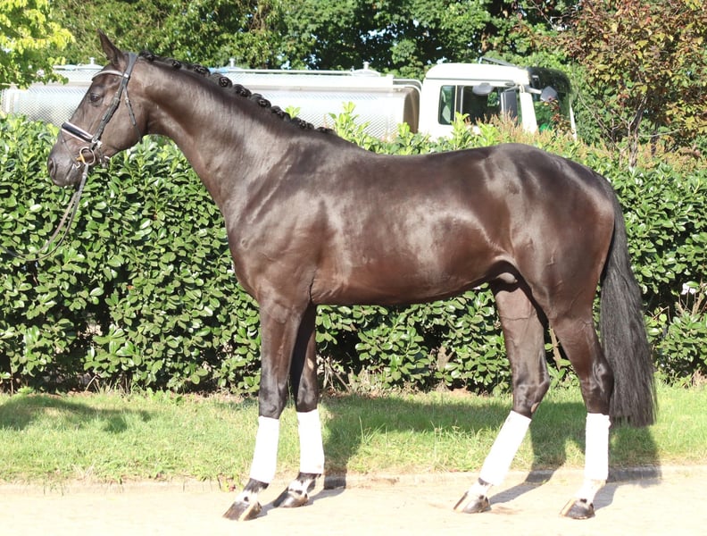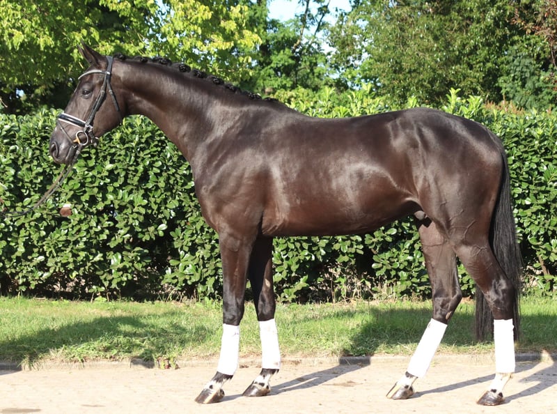 Typvoller 4 jährger Rappwallach von V-Plus x Benetton Dream, mit 3 sehr guten Grundgangarten. Er ist bereits kurz angeritten, jedoch aus Personalmangel momentan nicht im Training. Aufgrund dessen momentan unter Wert zu verkaufen. Preis zzgl. Mwst. Anfragen nur telefonisch, E-mails werden nicht beantwortet.
