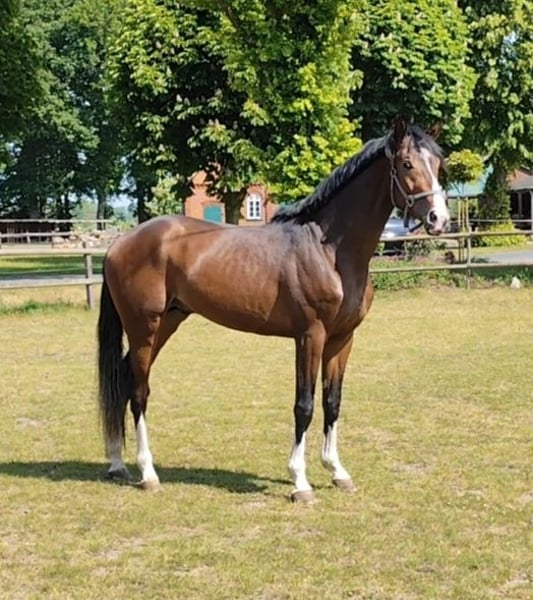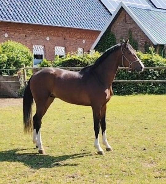 Elegant Hanoverian Gelding for Sale For sale is a stunning black-brown Hanoverian gelding, born in 2022. Standing at 16.1 hh, he impresses with his impressive size and elegant appearance. The gelding is ideally suited for dressage and demonstrates considerable talent, supported by a promising basic training starting with groundwork. He has a pleasant character and is friendly in handling. His movements are rhythmic and expressive, making him a promising partner for ambitious dressage riders. He comes from the first crop of the Bundeschampion, who finished fifth and tenth at the Dressage Horse World Championships. Segantini FRH made a sensational debut this year in the advanced class. Under his trainer Dorothee Schneider, he placed in the top ten at the seven-year-old dressage horse WM, finished second in the Burg-Pokal qualification in Munich, and recorded numerous victories. As a yearling, Segantini FRH was the best German stallion at the Dressage Horse WM (6-year-olds), finishing fifth overall after posting nearly 90% in the final qualification and earning a top score of 9.4 for his remarkable rideability. If interested or for further information, please feel free to contact me. Only via phone call with the breeder: Tel. 0176-41710805.