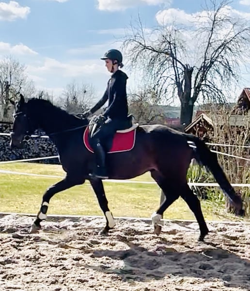 Langbeiniger, kompakter Wallach mit BALANCE und KRAFT, er hat 3 gute GGA- immer im TAKT, sehr guter Schritt, großer Trab und bereits erstaunlich ausbalancierter Galopp, erstes Arbeiten über Cavalettis in Schritt und Trab - der ist mutig und motiviert Direkt vom Züchter schonend angeritten ist er erst ein paar Wochen unterm Sattel, zeigt aber bereits POTENTIAL künftig ein richtig gutes DRESSURPFERD zu werden positive Arbeitseinstellung, schönes Sitzgefühl die Mutter, eine StPrSt. mit guter Stutenprüfung war selbst erfolgreich in Rpfd- und Drpfd-A und mit gutem Springtalent ausgestattet- bis Springpfd- L vorgestellt und vom Fleck weg Training im Busch mit Wasser, Graben, Hügel etc. aus der Londonderry-Großmutter stammen z.B. ein Elite-Auktionspferd (S*-Dressur) und eine internat. erfolgreiche 4*-GRAND-PRIX Stute, sowie weitere erfolgreiche Dressurpferde Problemlos im Umgang, mit anderen Pferden, Haltung (Box, Offenstall, Weide etc.), robust bisher barhuf Herzlich Willkommen ihn kennen zu lernen!