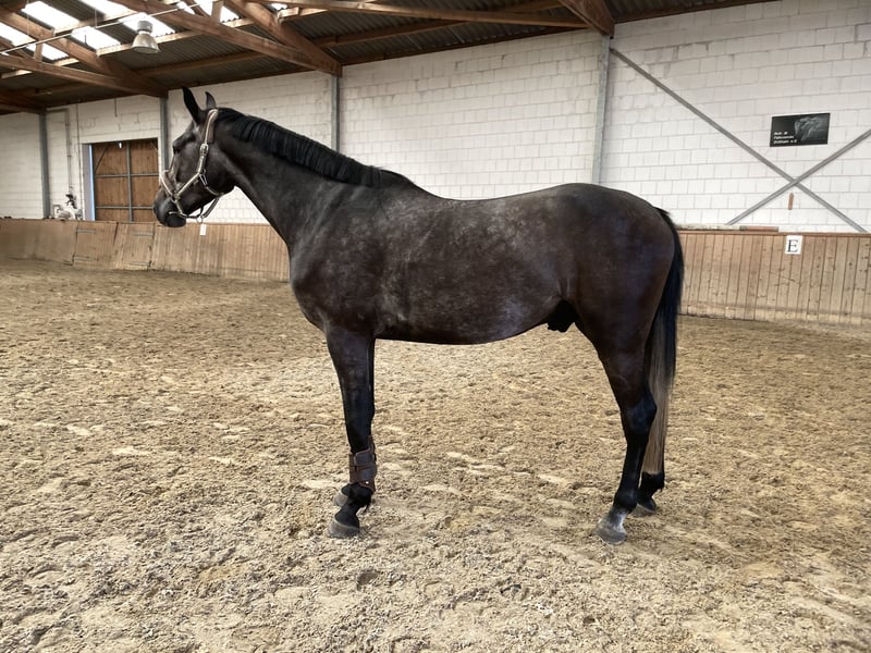 **Sales Advertisement: Hanoverian Gelding** For sale is a Hanoverian gelding, born in 2021. He stands at 174 cm and is sired by Diro (Diamant de Semilly); his grandmother has competed successfully up to S*** level (https://www.horsetelex.de/horses/pedigree/1898304/soraja-von-der-muehle). Ideal for riders looking for a promising partner for sport or leisure. If you are interested or need further information, please feel free to contact me.