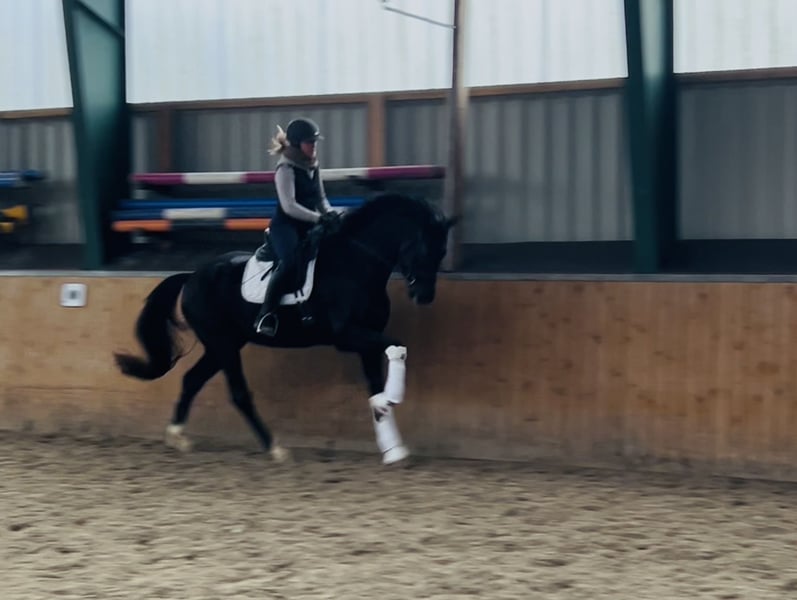 Hannoverian gelding, born in 2022, black with a stock height of approximately 17.4 hh – a promising young prospect for dressage. This elegant gelding is already well-ridden and demonstrates a harmonious basic training. His impressive size, refined appearance, and balanced temperament make him an ideal partner for ambitious riders seeking a talented dressage horse. A true potential horse on the rise with significant development opportunities. I am happy to provide further information and arrange a viewing. Due to a health issue that does not affect him, he is being offered at a price well below market value.