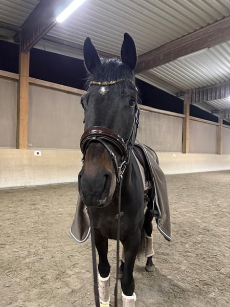 Te koop staat een elegante en mooie Hannoveraanse ruin van Vaderland x Lorenzio uit het jaar 2022. Deze indrukwekkende zwartbruine ruin heeft een stokmaat van ongeveer 1,72 m en valt op door zijn goede bouw en zijn aansprekende uitstraling. Vincenzo Vivaldi VF heeft veel potentieel in de dressuursport, hij beschikt over een aangename, leergierige aard en is zowel in omgang als onder het zadel braaf, vooral in de omgang met kinderen. Zijn bewegingen zijn ruim en expressief, zijn draf is vol schwung, wat hem tot een veelbelovende partner maakt voor ambitieuze ruiters. Belangrijk: BIJ VERDER OPLEIDING stijgt de prijs. Als u serieuze interesse heeft, kunt u gerust contact met ons opnemen voor meer vragen of om hem persoonlijk te ontmoeten.