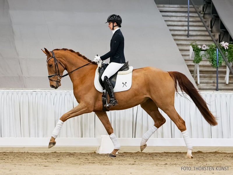 Bonds Barolo W überzeugt durch seine Zuverlässigkeit und eine herausragende Grundgangartenqualität, die sofort ins Auge fällt. Mit seiner Reiterin Lea Sophie Staedel konnte er bereits in einer Reitpferdeprüfung vordere Platzierungen erzielen. Sein Vollbruder erhielt 2020 ein positives Körurteil und unterstreicht damit die herausragende Leistungsfähigkeit dieser Familie. Der weitere Stutenstamm wird geprägt von Bodyguard WF v. Belissimo M (DRE: S mit Birgitt Balzer). Sportname: Bonds Barolo W Turniererfolge: RPF: 1/2. 1. Generation gekörte Hengste: gek. Hengst v. Bonds v. Bonds (Verden 2020,HM 2020). 3. Generation Sportpferde Springen: Corinero v. Coronas (SPR: 1,45 m mit Carina Janßen); v. Lancer III (SPR: 1,35 m mit Nikita POMOGALOVA). Aufbauprüfungen Dressur: Clementine/Clementine 17 v. Charming (DRE: L). 4. Generation Sportpferde Dressur: Bodyguard/Bodyguard WF v. Belissimo M (DRE: S** mit Birgitt Balzer); Don Salvatore v. Daley Thompson (DRE: M* mit Kahra Alena Baumann); Siebenstein/Siebenstein WF v. Schumacher (DRE: M* mit Marion Hertz); Domenico/Diamonit 4 v. Dr.Doolittle (DRE: M* mit Kathleen Muhr). Sportpferde Springen: Amarone/Amarone 4 v. Arpeggio (SPR: 1,55 m mit Thomas Sandgaard,Grand Prix Table A 2018,Grand Prix Two Rounds 2017,Grand Prix Two Rounds 2017,Grand Prix Two Rounds 2017,Springprüfung Kl. S -Großer Preis**- 145cm -international- 2016,Springprüfung Kl. S -Großer Preis**- 145cm -international- 2016,Grand Prix Table A 2016,Grand Prix Table A 2016,Europameisterschaft der Springreiter -Mannschaft- 2015,Nations Cup 2014,Nations Cup 2014,Nations Cup 2013,Nations Cup 2012,Springprüfung Kl. S -Großer Preis**- 145cm -international- 2012,Springprüfung Kl. S -Großer Preis***- -international- 2012,Nations Cup 2012,264.9.2.1 - Nations Cup: 2 rs not atc T A all riders in 2nd, 1 in j-o 2011); Pinoccio 118 v. Polytraum (SPR: int. 1,40 m mit Jan-Morten Kruck); Vulkan L v. Vulkano (SPR: int. 1,30 m mit Marcin Betkowski); Enso v. E-Pilot (SPR: 1,40 m mit Dennis Buddenberg); Passion for Jump v. Potsdam (SPR: M mit Sophia Sigl). Bes. Prämientöchter: VbPr Finchen v. Finest. 5. Generation Sportpferde Springen: Coeur Dame v. Cashman (SPR: 1,50 m mit Christian Brühl); Quanta Costa/Quanta Costa 4 v. Quattro B (SPR: 1,45 m mit Andreas Kreuzer); Courage Cavalier v. Landadel (SPR: 1,40 m mit Ottens,Hans-Jörn); Dexter 73 v. Dialekt (SPR: S mit Haag,Martin); Carpe Diem/Carpe Diem 51 v. Cashman (SPR: 1,35 m mit Hans-Thorben Rüder); Entertainer 17 v. Ex Libris (SPR: 1,30 m mit Marie Ackermann); Ile d'Anne v. Ile de Bourbon (SPR: M mit Sievers,Anne); Pützi/PUETZI v. Pilot (SPR: M mit SIEVERS,ANNE). Aufbauprüfungen Springen: Ratibor 14 v. Ramiro's Son (SPR: M mit Harke,Olaf); Let's go 14 v. Landadel (SPR: L); Paddington 13 v. Pilot (SPR: L). Mutter: La Royal W ZL: 9/8 Großmutter: Finja ZL: 6/5 Turniererfolge: DRE: A 1/1. DRP: A 1/2. DPF: A 1/2. 2/3. 2/4. 1/w. RPF: ohne Klasse 1/3. 1/5. Das Pferd ist ein Verdener Auktionspferd und wird am 25.01.2026 online versteigert. Vom 12.01. bis zum 25.01. kann das Pferd jeden Tag beim öffentlichen Training besichtigt und ausprobiert werden. Das Startgebot bei der Versteigerung ist 8.000 Euro.