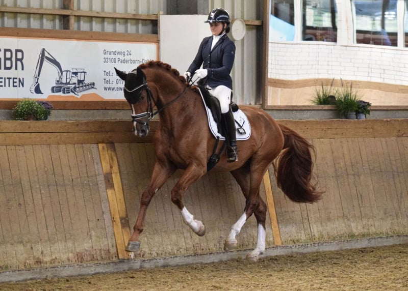 from a top breeding house, 4-year-old half-brother to the successful 2 million stallion VIVINO! Licensed, now gelded, carefully developed with a lot of time, Dressage Horses A 2nd place with 8.0, Riding Horses with 8.2, very much potential, very rideable and cooperative. Current videos available via WhatsApp 0171-4720209 Current X-rays can be sent, clinically without findings. The horse is located in Warendorf.