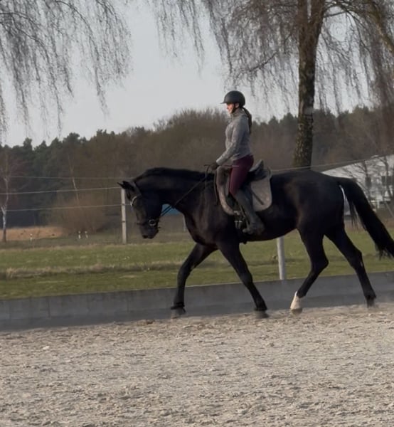 Verkaufe meinen selbst gezogenen Wallach vom Santos aus einer Finest Mutter mit einer stattlichen Größe von ca. 1,82! Er hat eine top Aufzucht genossen und noch nie etwas schlechtes erlebt. Nun ist er seit Januar diesen Jahres regelmäßig unterm Sattel und trotz seines jungen Alters bereits eine Lebensversicherung (dabei aber nicht triebig). Somit auch für schwächere Reiter geeignet - mit entsprechender Unterstützung. Ablongieren war noch nie notwendig, er kennt „Einparken“ an der Aufstieghilfe, ist alleine zu verladen und allgemein auch im Umgang ein Schatz. Sein erstes kleines Kreuz unterm Reiter ist er bereits problemlos gesprungen. Ich wünsche mir für ihn den passenden Menschen, wo er möglichst einen Endplatz und natürlich täglichen Freilauf bekommt. Ranghoch in der Gruppe!