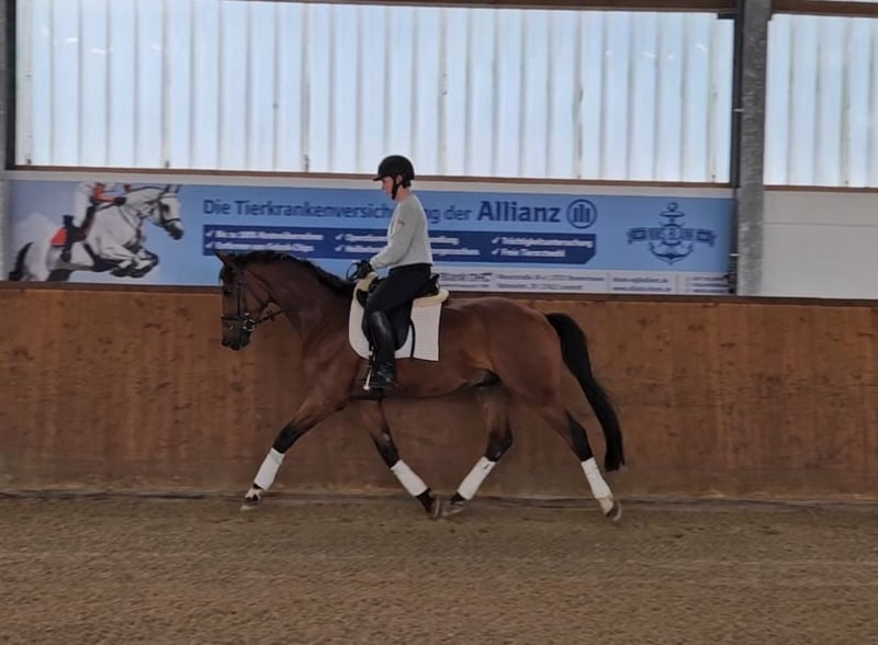 Filius mostra ottimi potenzial nel dressage ed è dotato di una buona base di addestramento. È desideroso di imparare, educato nel maneggio e si dimostra collaborativo e affidabile sia durante l'allenamento che in passeggiata. È anche molto talentuoso nel salto libero e ha già affrontato i primi piccoli ostacoli sotto la sella. Ideale per cavalieri che cercano un cavallo promettente per il futuro, sia per il dressage che come compagno versatile per il tempo libero. Per ulteriori informazioni o domande, sono a vostra disposizione. Attendiamo con piacere il vostro messaggio!
