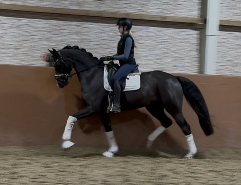 Dear Interested Parties, To arrange a trial ride, please send me a WhatsApp message. For further questions, I am available during the day via WhatsApp, and you can reach me best by phone between 4 PM and 7 PM. I look forward to hearing from you. www.angelina-devittorio.de ⭐️Fürsti⭐️ Age: 5 years (2020) Height: 16.1 hh Lineage: Fürst Samarant x Dancier Training level: well-started under saddle X-ray: Good radiographs available Presented in a stallion-like type and with impressive beauty, this five-year-old gelding by Fürst Samarant out of a Dancier-Sebastian mare makes a striking impression. Currently at a riding horse level, he impresses as a highly talented young horse that has been carefully and horse-appropriately trained, bringing joy every day. Since he is still somewhat underdeveloped for his age, he is being sold at a very reasonable price (well-started). This presents a unique opportunity to acquire a stunning, highly talented young horse at an absolutely attractive price. With his very intelligent and calm nature, he is a young horse that will be equally enjoyable for his trainer in training and in everyday riding. He consistently proves to be uncomplicated, brave, and of a lovable character; he is a true treasure in handling. He is equipped with a lot of pleasant go and is always manageable and well-behaved. His fundamental qualities in all three basic gaits are very good, and he has everything needed to excel in the large arena in the future. Especially noteworthy is his outstanding walk! With a beautiful appearance, a clear mind, and an absolutely positive demeanor, he is developing into a young horse of exceptional quality. Thanks to his very uncomplicated character, he is absolutely suitable for amateurs and well-suited for any rider with young horse experience. ⚜️ Phone: 0171-3438949 ⚜️ Email: a.devittorio@web.de ⚜️ https://www.ehorses.de/angelinadevittorio Facebook and Instagram: Angelina De Vittorio