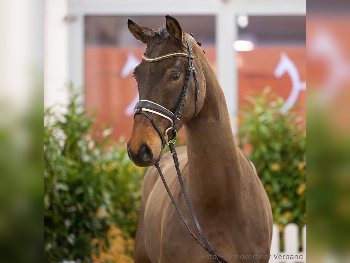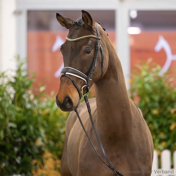 Fiolo präsentiert sich als Dressurofferte mit guter Rittigkeit und komfortablem Reitgefühl, ideal für den gehobenen Sport. Sein Halbbruder Zoom On v. Zoom feiert bereits Erfolge in M-Dressuren unter seiner Reiterin Franca Hartwig. Der Stutenstamm ist geprägt von dem gekörten Hengst Di Caprio v. Davignon I (DRE: Grand Prix mit Bärbel Eppinger) und den Spitzensportlern Don Vittorio v. Donnerhall (DRE: Grand Prix mit Michael Klimke) und Ropeter v. Rosentau (DRE: international S** mit Kevin Herold). 1. Generation Sportpferde Dressur: Zoom on v. Zoom (DRE: M* mit Franca Hartwig). Bes. Prämientöchter: HannPrA Zoey B Cool v. Zoom; HannPr Frida Negra/Frida B v. Fürst Nymphenburg. 2. Generation Auktionspferde: Dada le Fou v. Del Piero (VA 2005). 3. Generation Sportpferde Dressur: gek. Hengst Di Caprio/Di Caprio 8 v. Davignon I (DRE: Grand Prix mit Bärbel Eppinger,Dressurprüfung Kl. S*** - Grand Prix Special - 2009,Dressurprüfung Kl.S**** - Grand Prix Kür - 2008,Dressurprüfung Kl. S*** - Grand Prix Kür - 2008,Dressurprüfung Kl. S*** - Grand Prix de Dressage 2008,Dressurprüfung Kl. S*** - Grand Prix Special - 2008,Dressurprüfung Kl. S*** - Grand Prix de Dressage 2008,Dressurprüfung Kl. S- Grand Prix Special - 2007,Dressurprüfung Kl. S- Grand Prix Special - 2007,Dressurprüfung Kl. S- Grand Prix de Dressage 2007,Dressurprüfung Kl. S- Grand Prix Special - 2007,Dressurprüfung Kl. S- Grand Prix Kür - 2006,Verden 1998); Don Vittorio v. Donnerhall (DRE: Grand Prix mit Klimke,Michael,VA 1994: 50.000 €); Ropeter v. Rosentau (DRE: int. S** mit Kevin Herold,Deutsche Meisterschaft Junge Reiter Dressur 2015,Deutsche Meisterschaft Junioren Dressur 2012,VA 2005); Donar B v. Donnerhall (DRE: M mit Voigt,Bernd Joachim,FoVA 1992). Sportpferde Springen: Orvin v. Ogano (SPR: 1,30 m mit Reinhard Lütke Harmann); Diacontina/Diacontina 4 v. Diacontinus (SPR: 1,30 m mit Nicole Birnfeld); Quanda 4 v. Quality (SPR: 1,30 m mit Maite Hansjosten); Lacantha v. Lacantus (SPR: 1,30 m mit Laura Stein); Espania 15 v. Escudo II (SPR: 1,30 m mit Stefanie Förster). Aufbauprüfungen Springen: HannPr Devjani v. Diacontinus (SPR: 1,30 m mit Reinhard Lütke Harmann); Dynasty 24 v. Diacontinus (SPR: 1,30 m mit Reinhard Lütke Harmann); Comteur v. Comte (SPR: 1,30 m mit Sylvio Gleitsmann); Aniello v. A Jungle Prince (SPR: M mit Bauhofer,Marc); Leonidas 106 v. Laptop (SPR: L). gekörte Hengste: gek. Hengst Conccello v. Cornet Obolensky (Windows v.h.Costersv.) (Hoftermin 2025). Auktionspferde: Rubin Roi v. Rosentau (VA 2003); Prachtvolle/Prachtvoll v. Pik Senior (FoVA 1986). Bes. Prämientöchter: HannPr Vivien v. Uccello; StPr Clara v. Comte (Herwart von der Decken-Schau Verden 2011); StPr Pina v. Pik Senior; StPr Rike v. Raphael; StPr Pirko v. Pik Senior; StPr Perdita v. Pik Senior (Ratje Niebuhr-Schau Verden 1988). 4. Generation Aufbauprüfungen Springen: MARIO 67 v. Matrose (SPR: L,FoVA 1979). Auktionspferde: Dany v. Dynamo (FoVA 1984); Gitana/Gitana 30 v. Gralsritter (FoVA 1977). Mutter: Dana ZL: 13/9 ZSP: Feldprüfung Reitpferd - Trab 6,00 Galopp 7,00 Schritt 6,00 / Durchschnitt Rittigkeit 6,50 / Durchschnitt Springen 6,50 Großmutter: Pina Prämierung: 1xIa. ZL: 15/8 ZSP: Feldprüfung Reitpferd - Trab 7,00 Galopp 7,00 Schritt 6,00 / Durchschnitt Rittigkeit 7,00 / Durchschnitt Springen 5,50 Das Pferd ist ein Verdener Auktionspferd und wird am 25.01.2026 online versteigert. Vom 12.01. bis zum 25.01. kann das Pferd jeden Tag beim öffentlichen Training besichtigt und ausprobiert werden. Das Startgebot bei der Versteigerung ist 8.000 Euro.