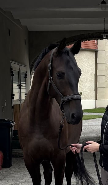 **Verkaufsanzeige: Traumhafter Hannoveraner Wallach zu verkaufen** Zum Verkauf steht ein wunderschöner Hannoveraner Wallach, geboren im Jahr 2020. Mit einem derzeitigen (! Er wird bestimmt noch ein paar Zentimeter wachsen) Stockmaß von 167 cm ist er der ideale Partner für Dressurreiter, die auf der Suche nach einem talentierten und anpassungsfähigen Pferd sind. Aufgrund seines leicht stämmigen Körperbaus deckt er Reiterinnen und Reiter in verschiedenen Größen ab (als Beispiel: Reiterin am Foto/im Video hat eine Größe von 173cm). Seine auffällige schwarzbraune Fellfarbe (im Winter ist er dunkler, im Sommer heller) und sein elegantes Auftreten machen ihn zu einem echten Blickfang. Der Wallach zeigt bereits vielversprechende Ansätze in der Dressur und hat das Potenzial, sich in diesem Bereich weiterzuentwickeln. Er wurde bereits erfolgreich auf Dressur Turnieren vorgestellt und nahm auf mehreren Dressur Kursen auswärts teil. Dabei verhält er sich außergewöhnlich ruhig und nervenstark. Er ist leicht im Genick und sehr fein zu reiten, obwohl er sehr viel Go hat. Der Wallach verfügt über drei top Gangarten! Er hat viel Schwung, ist aber trotzdem angenehm zu sitzen. Er ist brav im Umgang, gut erzogen und zeigt sich sowohl im Training als auch im Gelände kooperativ und motiviert. Auch alleine ausreiten ist kein Problem! Im Sommer wurde er am Reitplatz bei Flutlicht trainiert, dabei ist er unerschrocken und konzentriert, egal ob alleine oder mit mehreren Pferden. Ideal für Reiter, die ein Pferd suchen, das sowohl im Sport als auch in der Freizeit Freude bereitet. Er ist sehr sozial und absolut freundlich zu jedem, egal ob Mensch oder Tier. Des Weiteren verfügt er über einen einwandfreien TÜV! Siehe die Dokumente unten. Er hat weder ein Überbein noch sonst etwas! Kerngesundes Pferd! Bei Interesse oder weiteren Fragen stehe ich gerne zur Verfügung. Besichtigungen sind nach Vereinbarung möglich. Auf Wunsch sende ich gerne mehr Videos zu!