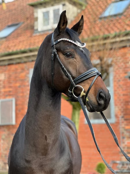 Damian è nato nella nostra fattoria nel 2020. Proviene dal primo raccolto di Despacito. Il piccolo uomo ci ha entusiasmato così tanto che abbiamo subito ricoperto sua madre con Despacito. Ha movimenti davvero fantastici e un carattere super. Ci è piaciuto molto allevarlo. Così come la sua addestratrice Anett Müller. Ha già addestrato molti dei nostri cavalli e li ha aiutati a progredire nelle competizioni. Abbiamo affidato Damian ad Anett Müller quando aveva solo quattro anni, a giugno. Fin dall'inizio, è stato una gioia per l'addestramento e anche per i primi minuti sotto la sella. Un bel giovane che sa come piacere.