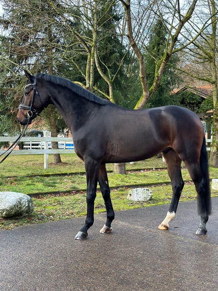 Damian nació en nuestra finca en 2020. Proviene de la primera camada del semental de caballos de dressage Despacito. El pequeño nos entusiasmó tanto desde el primer momento que decidimos volver a cubrir a su madre con Despacito. Tiene unos movimientos realmente impresionantes y un carácter excelente. Disfrutamos mucho de su crianza porque es muy amable en el manejo. Le hemos dado tiempo para que se desarrolle físicamente. Con solo cuatro años, en junio de 2024, comenzamos su formación. Desde el principio, tanto en la lungación como en los primeros minutos bajo la silla, nos ha dado mucha alegría. Siempre quiere hacer las cosas bien. Actualmente, su nivel de formación es de caballos de dressage A y comenzamos de manera lúdica con las primeras lecciones de L. Damian le brinda a su jinete una sensación maravillosa gracias a su ya muy buena conexión y valentía. Un joven fino que sabe cómo complacer.