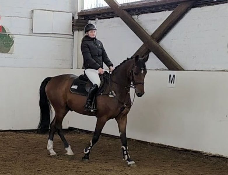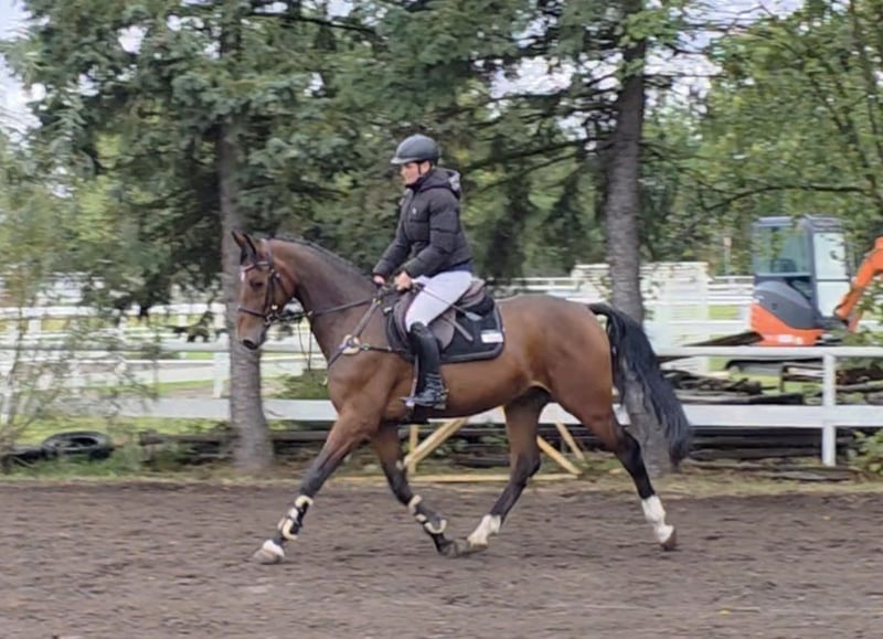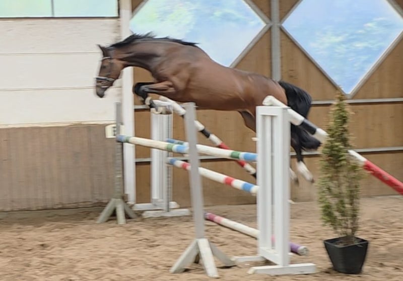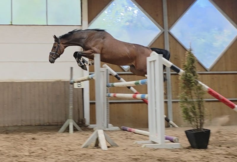 Cedrik is a very handsome and spirited gelding with a versatile and promising temperament. He is very rideable, equipped with good movement, and has a natural potential for jumping due to his pedigree. He jumps with style, courage, and ability, showing caution and great awareness. He has an excellent attitude and always tries to do his best. At first, everything seemed quite normal with him, but as he gained strength, he improved steadily, and now it’s clear what a wonderful horse he is, not least because of his temperament. A horse that simply brings joy to daily work and is versatile in use. We will hear a lot more about him in the future. In his first official competition, an introductory jumping class in Luhmühlen, he remained clear and was among the winners of that event. He is also easily ridden in the terrain. His character and size make the charming Cedrik an excellent girl/dam’s riding horse with potential for higher levels. His brother, for example, has already been placed at 1.40 m. He can also be imagined as a partner for demanding leisure riders, in dressage, or even in eventing. He is gentle and uncomplicated in handling, both at home and at competitions. He gets along very well with other horses and is turned out daily with them in the paddock. Simply a horse that one could only wish for. 5-year-old Hanoverian gelding, 16.1 hh Cabo Verde (Christian) x Calato x Corrado Good X-ray and clinical exam available Videos: https://youtu.be/UJUEDYSYB04?si=wMR5gtTRfFxtFPBB https://youtu.be/OdXWvmmOg88?si=Bggi4g3Jm1sclyR9 “Videos, training clips, and further insights into our sale horses can also be found on Instagram: [maresi_lange]. There you will find additional information and a closer look at the development of the horses. Videos, training highlights, and more impressions of our sale horses are also available on Instagram: [maresi_lange]. There you can gain additional insights and see the horses’ progress.” Further horses are available on my homepage MaresiLange.de or upon request. Please note that the description of the horse is based on subjective impressions and experiences and does not constitute a guarantee of qualities or characteristics. Trial riding is at your own risk. The sale is made on behalf of the owner. For viewing or trial riding, we reserve the right to charge a fee of €30, which will be deducted from the purchase price if the horse is bought.