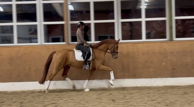 Verkaufe eleganten Oldenburger Wallach – ideal für Dressurliebhaber! Dieser hübsche Fuchs-Wallach wurde im Jahr 2021 geboren und überzeugt durch sein freundliches Wesen sowie sein beeindruckendes Erscheinungsbild. Mit einem Stockmaß von 168 cm bietet er die perfekte Größe für ambitionierte Reiter, die Wert auf Qualität und Ausdruck legen. Sein ausgeprägtes Talent im Dressursport zeigt sich in seiner guten Bewegungsfreiheit und Lernbereitschaft. Der Oldenburger ist gut ausgebildet, motiviert und bereit, gemeinsam mit seinem neuen Besitzer an Turnieren teilzunehmen oder die nächsten Schritte im Dressurviereck zu gehen. Aufgrund von Engständen im Rücken unter Wert zu verkaufen. Anfragen nur über WhatsApp oder Telefon Bei Interesse oder für weitere Informationen stehe ich gerne zur Verfügung. Überzeugen Sie sich selbst von diesem vielversprechenden Pferd und vereinbaren Sie einen Besichtigungstermin!