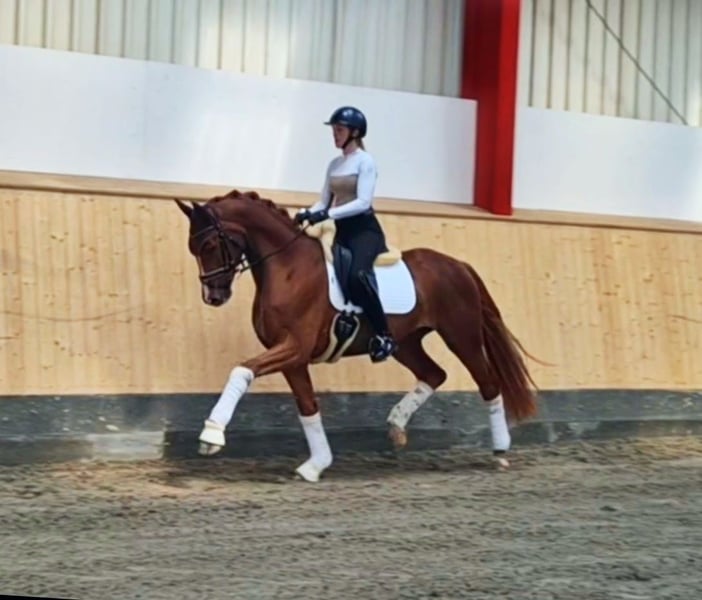 For sale is a very charming 4-year-old gelding by Secret, who impresses with his balanced temperament and promising talent for dressage. Under saddle, he consistently shows motivation, attentiveness, and a willingness to learn. His nerves and work ethic are commendable, as is his above-average walk and very good canter. He has already achieved placings in the Dressage Horse class A. Currently, work continues on canter-to-walk transitions and the extended canter. In daily handling, the gelding also proves to be very well-behaved: he is calm with the farrier, easy to load, and overall very straightforward to handle. Thanks to his balanced and reliable nature, I can easily see him as a good schoolmaster or suitable for less experienced riders. A forward-going young horse with a pleasant character that brings joy to daily riding. 📞 For inquiries, please call only at 0172 / 4336587 📧 Emails cannot be answered 📸 Instagram: Frederike_ni
