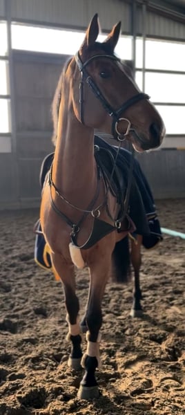 Ascendencia: Mangoon x Dollar du Murier x Fighting Alpha x Grannus A la venta nuestro potro de 5 años, Mangoons Jumper, criado y nacido en nuestra cuadra. Este simpático joven atleta de competición impresiona por su facilidad de manejo, su perspectiva y su carácter sereno en el recorrido. A los 4 años, ya adquirió experiencia en concursos y se mostró muy valiente y sin miedo al salto. Ya ha ganado en la categoría de Caballos de salto A. Su madre, Dolly Jumper, fue ella misma exitosa en concursos de salto hasta 1,40 m y ha dado varios descendientes. Su primer potro, C’est Paris, también compitió con éxito hasta 1,40 m con Lexi Stais. Su segundo potro, la yegua de 6 años Ally Jumper, logró numerosas colocaciones y rondas limpias en Caballos de salto A y L el año pasado. Mangoons Jumper es el tercer hijo de Dolly Jumper. El padre, Mangoon, también proviene de nuestra cría. Ganó, entre otros, el Campeonato de Deister de caballos de 4 años en Dobrock y actualmente compite internacionalmente hasta 1,60 m con Lorenzo de Luca. Mangoons Jumper destaca por su hermoso movimiento, su talento en el salto y su actitud tranquila y segura en el recorrido. Un prometedor caballo en desarrollo para seguir avanzando en el mundo del salto. Las radiografías están disponibles y no presentan hallazgos patológicos. Para más información, no dude en contactarnos.