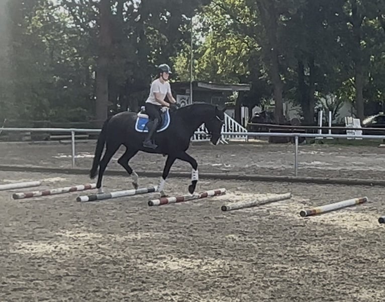 With a heavy heart, I am looking for a new home for my beloved 5-year-old gelding, as he unfortunately cannot meet my sporting ambitions in dressage. He is a very balanced, friendly horse with a great character and is absolutely uncomplicated in handling. For his age, he appears calm, reliable, and people-oriented. He is experienced in both group and solo rides in the terrain and is always well-behaved and composed. He is familiar with everyday situations such as dogs, cats, or chickens and remains relaxed. He is used to herd life and currently stands comfortably with other geldings – both on pasture and occasionally in the box. He has been solidly trained in dressage (successfully presented at competitions). Very easy to ride – even suitable for children (see last picture). However, due to his radiological findings, he is not suitable for competitive sport. I am therefore looking for a loving home where he can be appreciated as a leisure partner and continue to enjoy a good horse life. He is especially suitable for someone looking for a reliable partner for relaxed rides, groundwork, or a calm leisure activity, including children. Fully vaccinated Priority goes to the well-being of the horse over price – it is important to me that he finds a good home. Please feel free to contact me at 015112514301 if you have any questions.