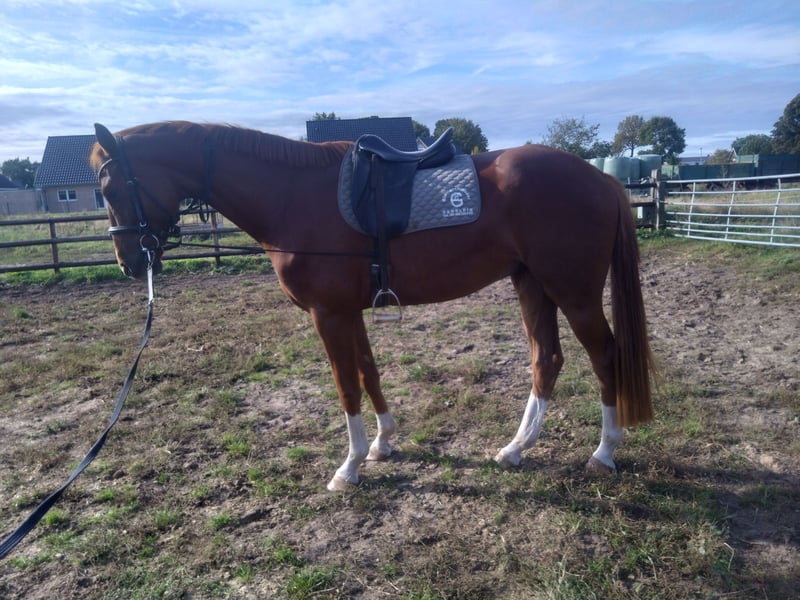Sehr schöner Fuchs Wallach mit 4 weißen Beinen und einem kleinen Stern in seinem hübschen Gesicht. Sein Stockmaß beträgt ca. 173cm. Valentino hat einen Menschen bezogenen Charakter und ist im Herden Verband aufgewachsen. Zur Zeit läuft er mit seiner Mutter und einem älteren Wallach bei seinem Züchter in der Offenstall Haltung. Valentino ist an longiert. Seine Grundgangarten sind alle Überdurchschnittlich. Sein Schritt geht locker und stark Übergreifend durch den Körper. Der Trapp zeigt sich sehr locker und schön Schwingend. Der Galopp ist seine Parade Disziplin, groß und Bergauf gesprungen. Sei Vater ist der doppelt Veranlagte Celler Landbeschäler Vidar, der selbst hocherfolgreich im Grand Prix von sich Reden macht. Seiner Reiterin Catja Thomsen hat er zum goldenen Reitabzeichen verholfen. Seine Großmutter war selbst bis zur Klasse M platziert. Seine Mutter ist auf Grund eines Weideunfall nicht geritten. Auf der Mutterseite vereint sich das Who is Who der niederländischen Dressurpferde Zucht Johnson- Jazz, mit dem besten was die deutsche Dressurpferde Zucht zu bieten hat über De Niro - Matrose – Gralsritter. Sollte ich ihr Interesse geweckt haben melden sie sich gerne. Nur in Profi Hände abzugeben. Auch tausch gegen ausgebildetes Fahrpferd kommt in Betracht.