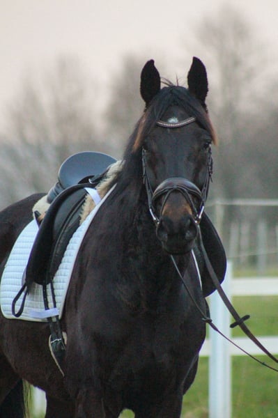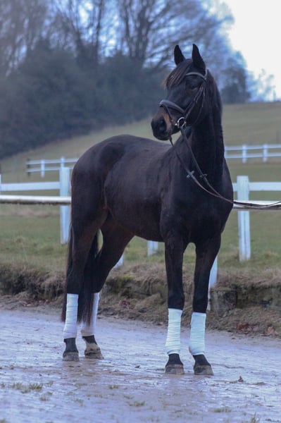 This 5-year-old gelding is currently looking for his perfect home. Dreamy stands approximately 1.73 meters tall and truly lives up to his name. Whether on the lead or under saddle, he is always an absolute sweetheart. He learns very quickly under saddle and brings great joy with his gentle nature. He is still at the beginning of his training, but already jumps small courses and shows enjoyment in pole work. I can see him as both a leisure horse and an excellent training horse for dressage or show jumping. He has three good gaits, with the walk and canter being particularly notable. Due to his temperament, he is suitable for a nervous or less experienced rider. He is also very friendly towards other horses. Currently, he spends half of the day on the paddock with us. If you are looking for an honest and sensible horse, you’ve come to the right place. We wish him a loving home with a family environment. A recent TÜV inspection from 2023, with no findings, including assessments of his back, neck, and poll, is available. Trial rides are of course possible, and videos can be sent upon request. For questions, please contact us at: 0157 56375226 Pedigree: Dream Boy x Van Gogh